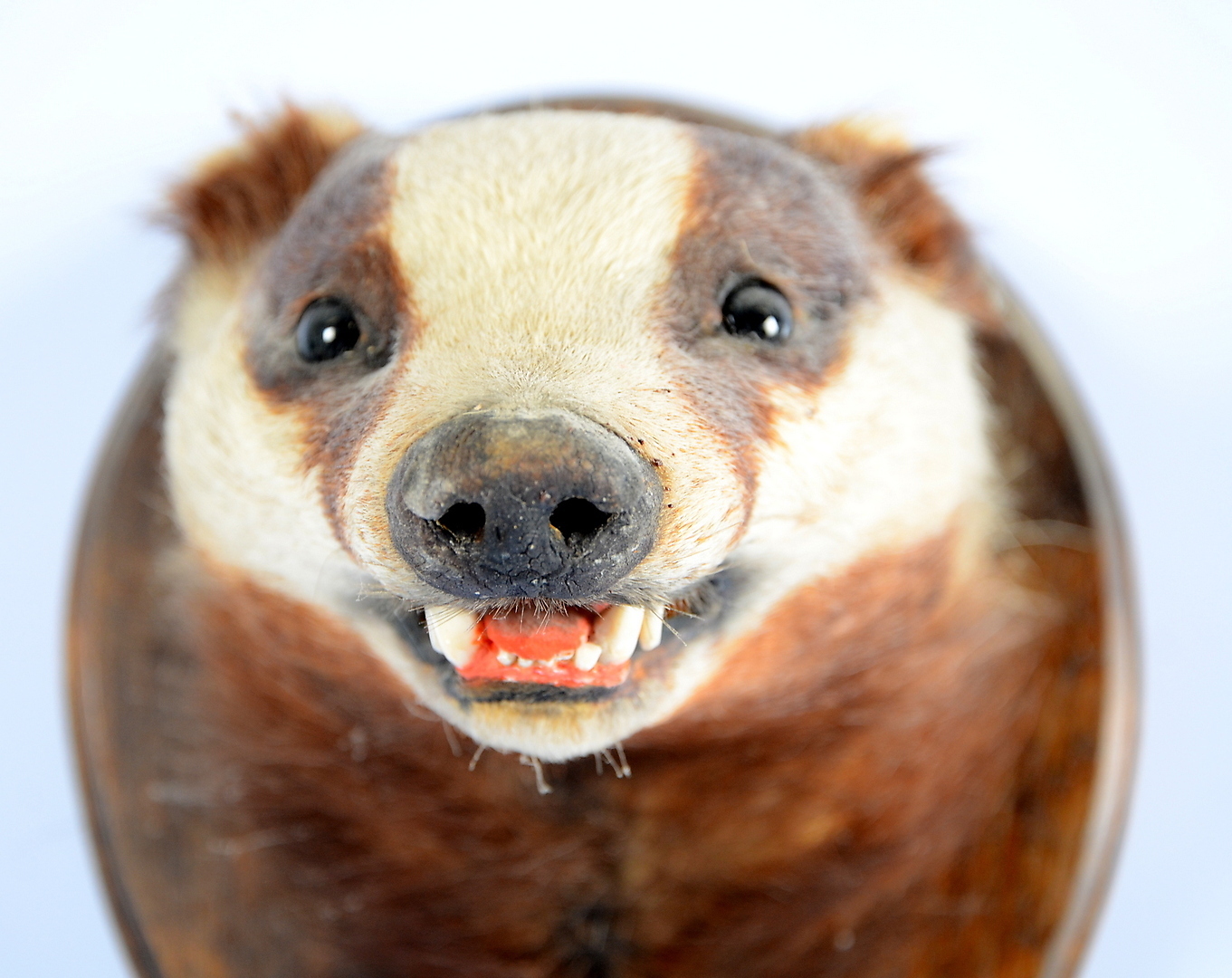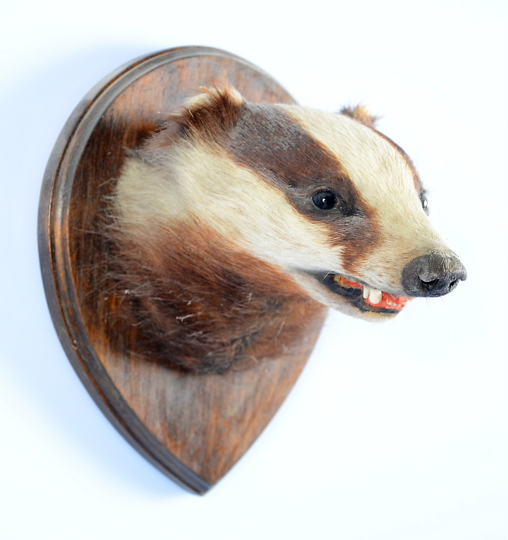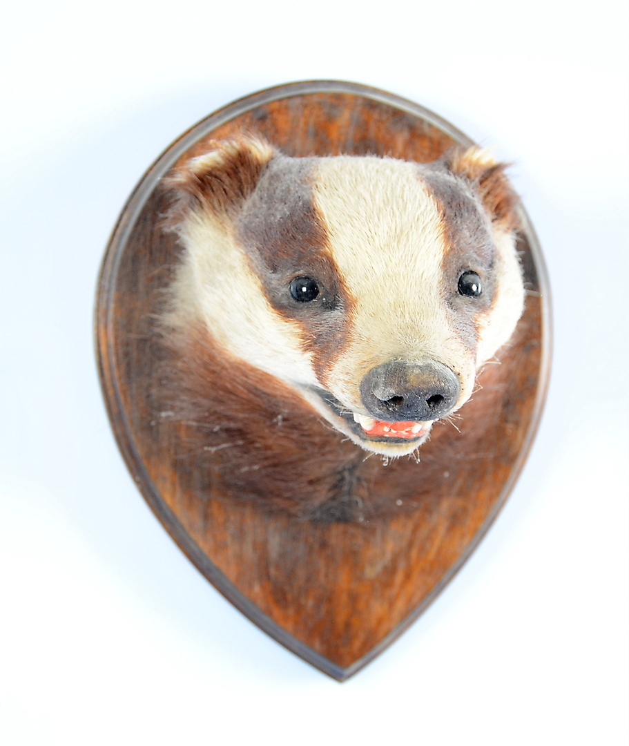 444194. JAKTTROFÉ, grävlingshuvud, 1900-tal.