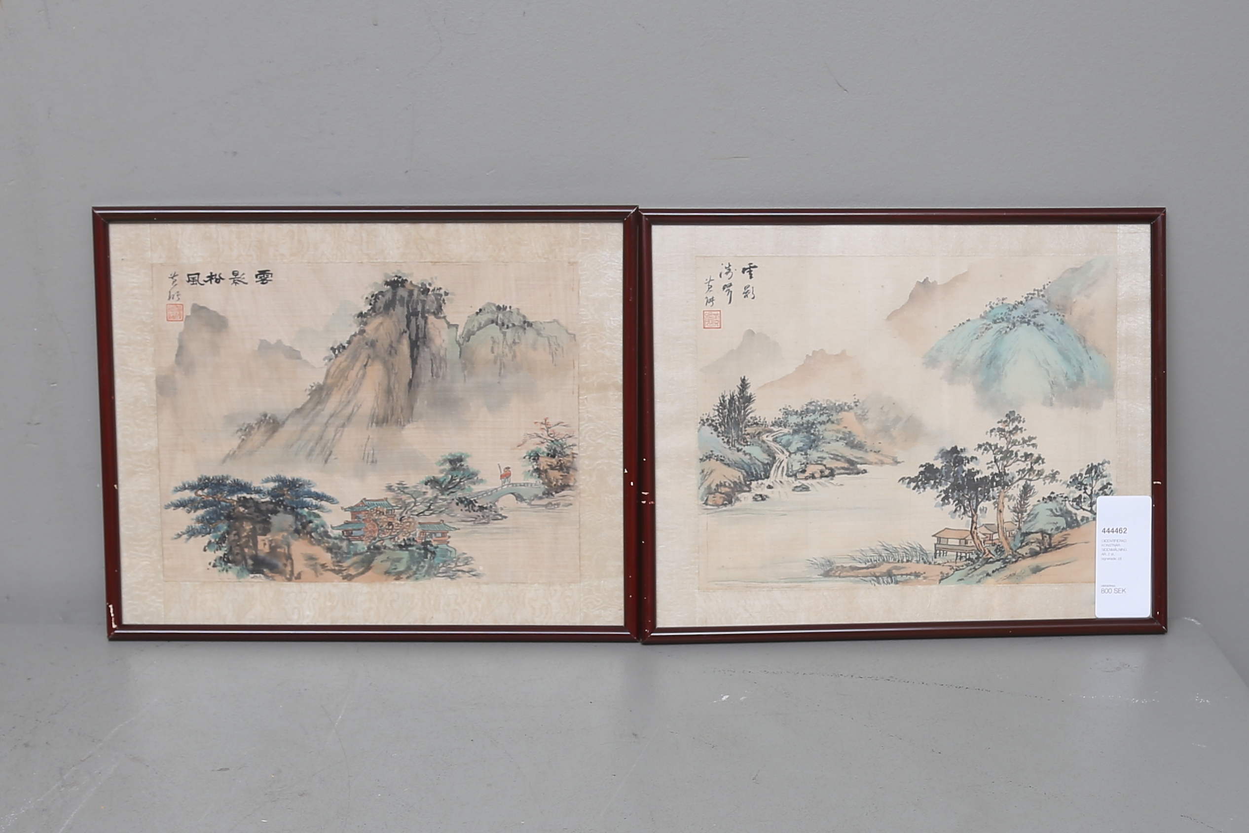 444462. OIDENTIFIERAD KONSTNÄR. SIDENMÅLNINGAR, 2 st, signerade.