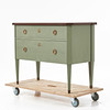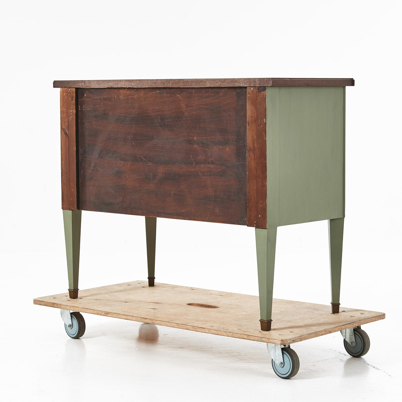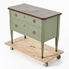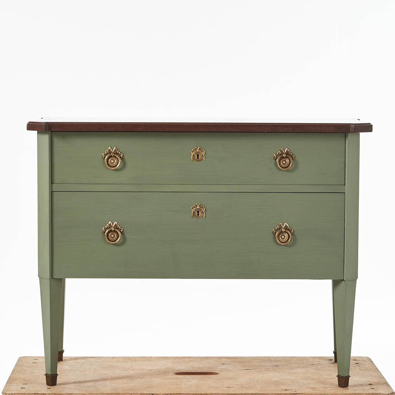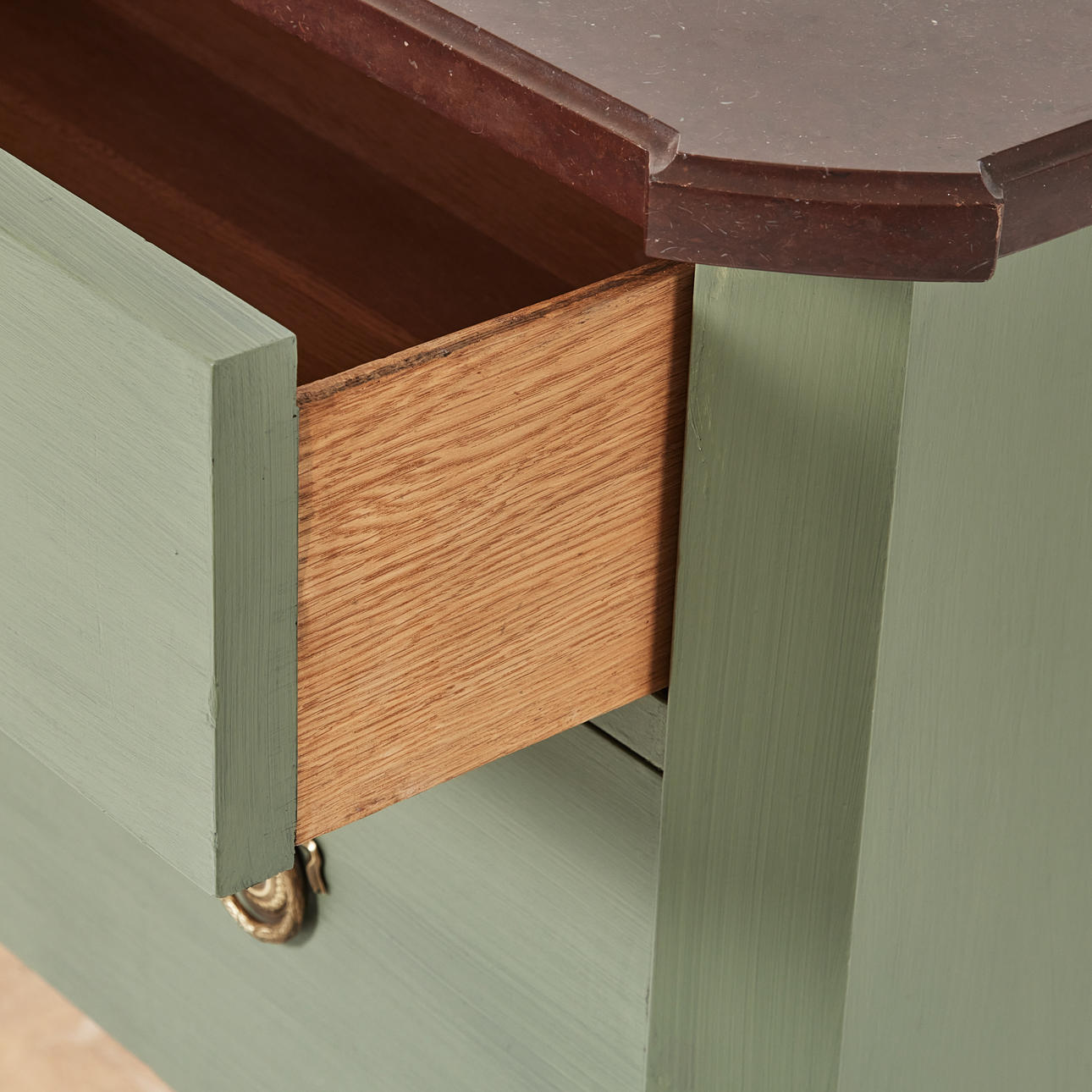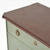 Grönmålad, två lådor, skiva i röd sten, mått ca 81, 105 x 50 cm.