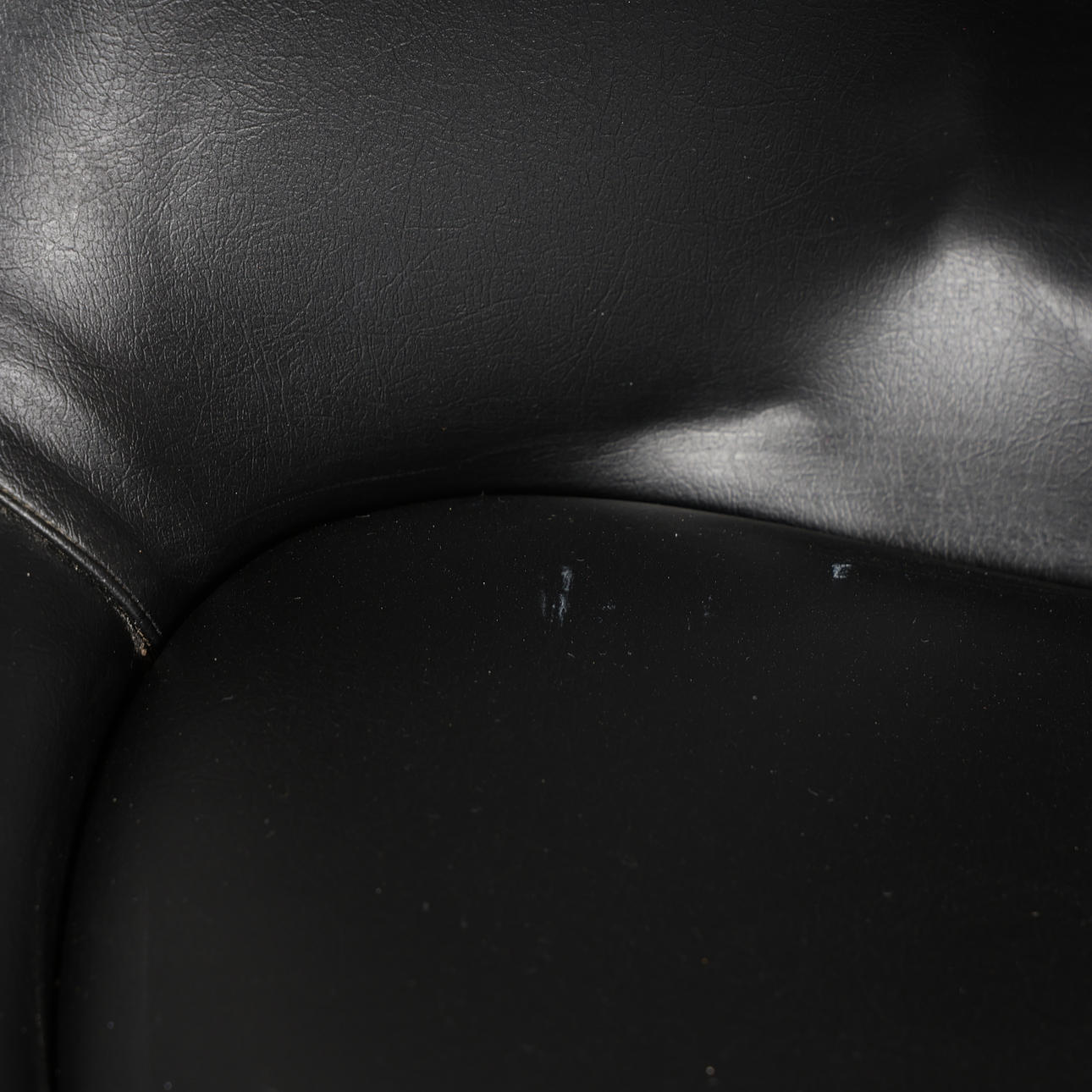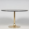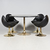 4 stolar, höjd 73 cm, sitthöjd 45 cm. 1 bord, höjd 70 cm, diameter 110 cm.