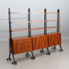 HYLLSYSTEM. Teak och lackerat trä. 1960-tal.
