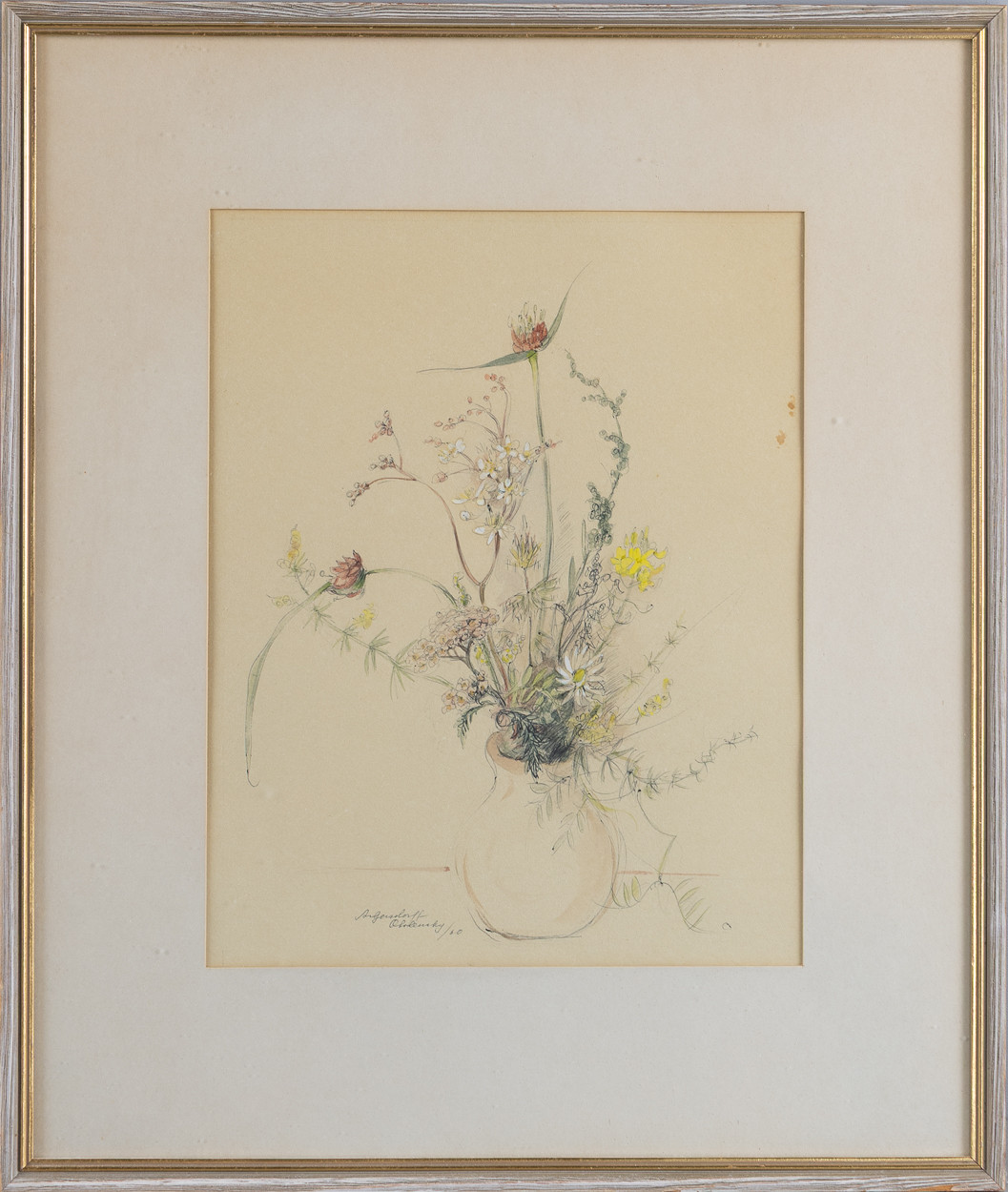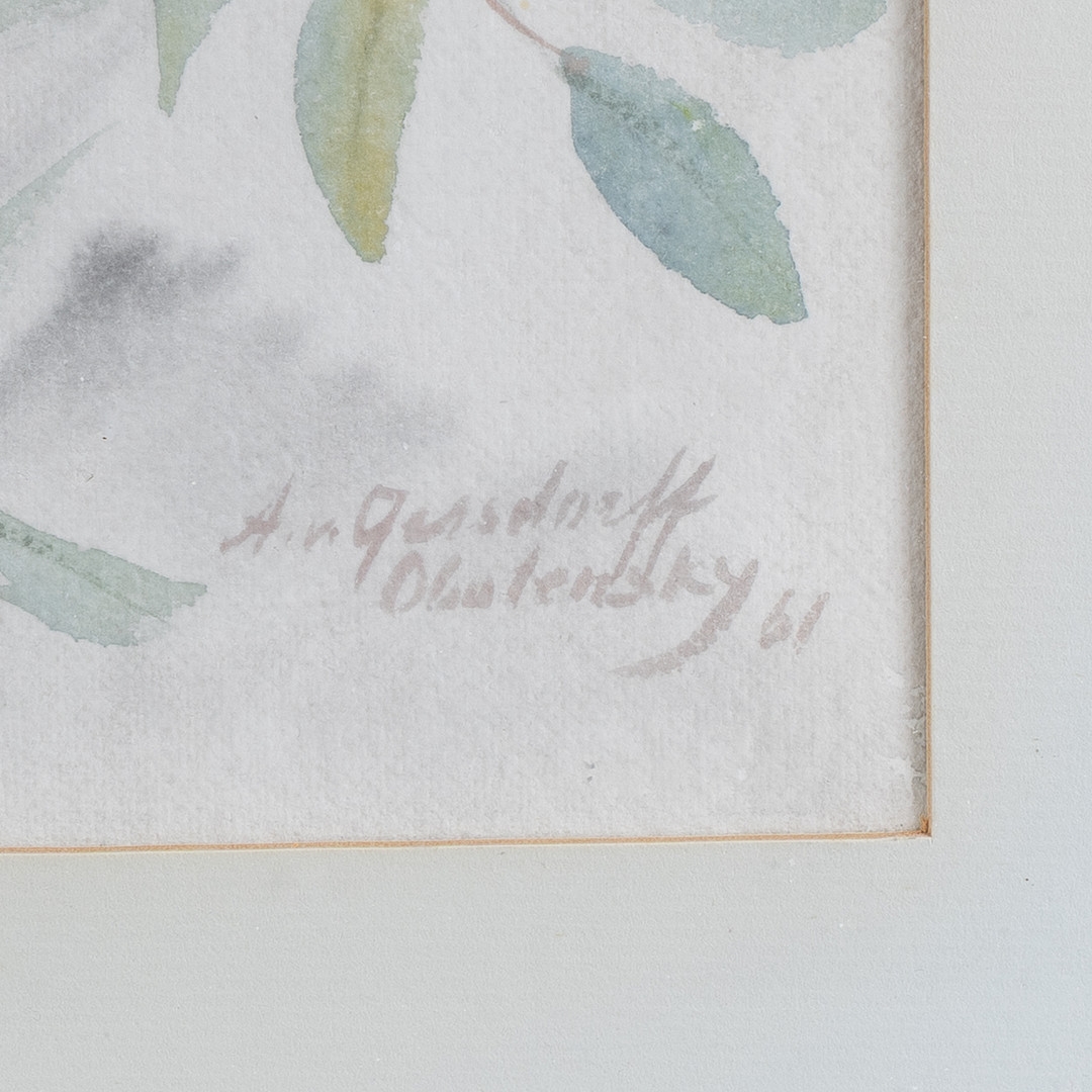 4455584. OIDENTIFIERAD KONSTNÄR. Blomstermotiv, 2 st, akvarell och teckning, signerade och daterade 1960-tal.