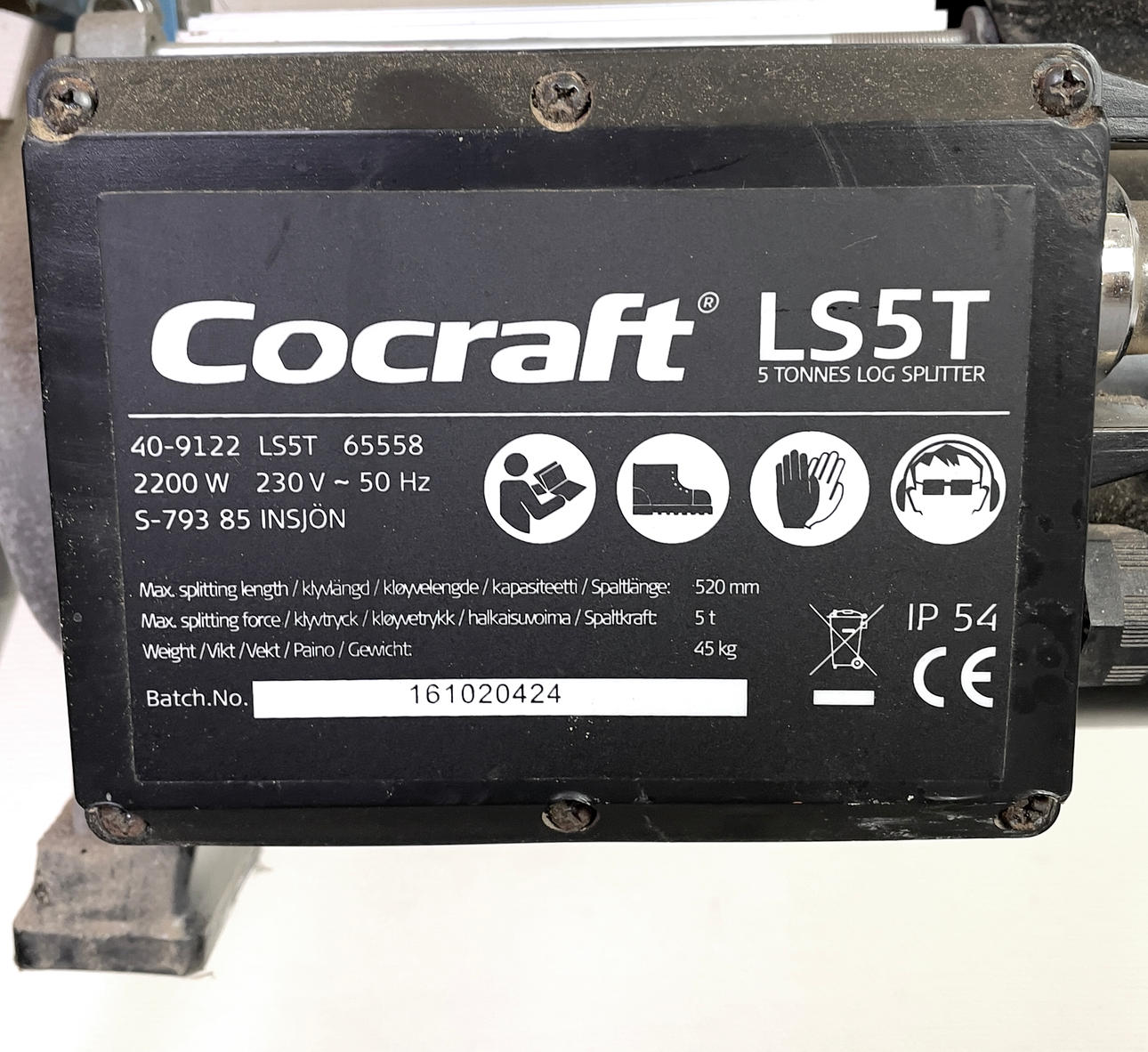 Ställning, höjd ca 103 cm, längd ca 122 cm, vedklyvens gap ca 52 cm.