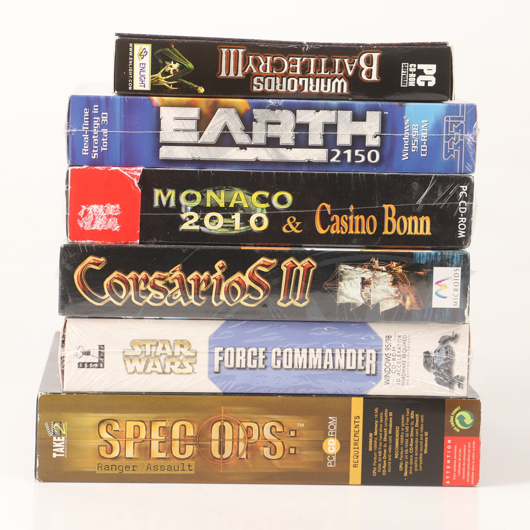 4458979. DATORSPEL, 6 stycken, CD-ROM, 1900-tal.