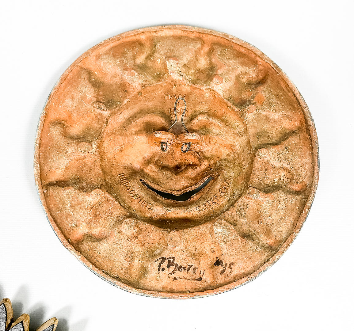 4459945. VÄGGPRYDNADER, 3 st, "SOL", olika material.