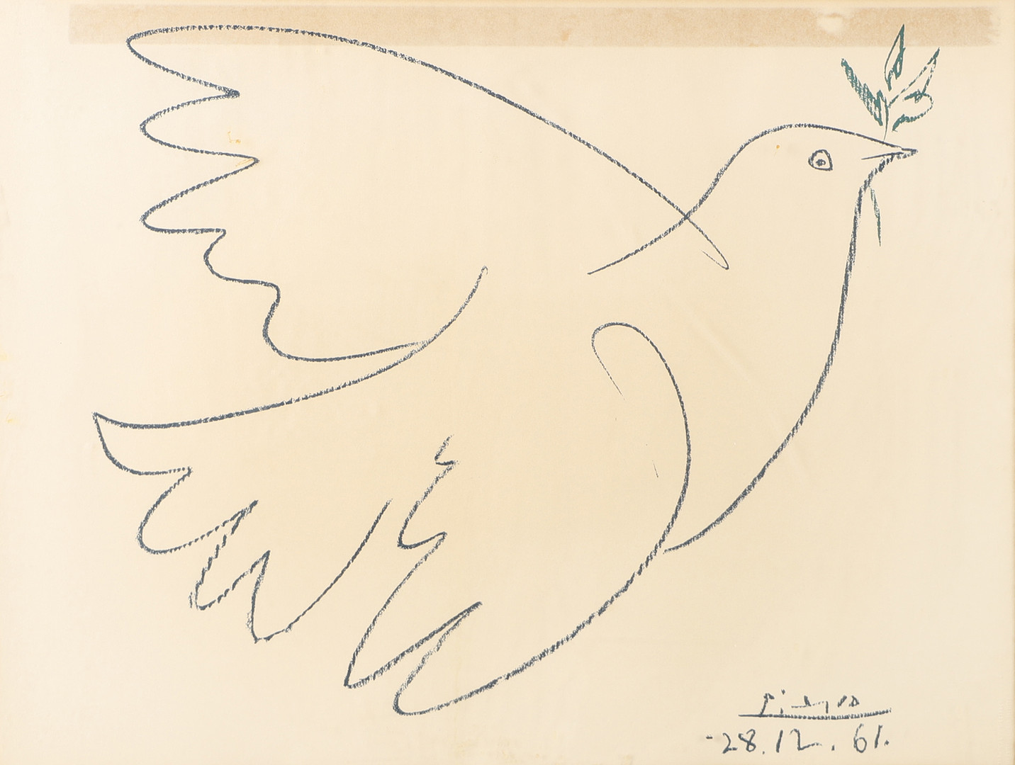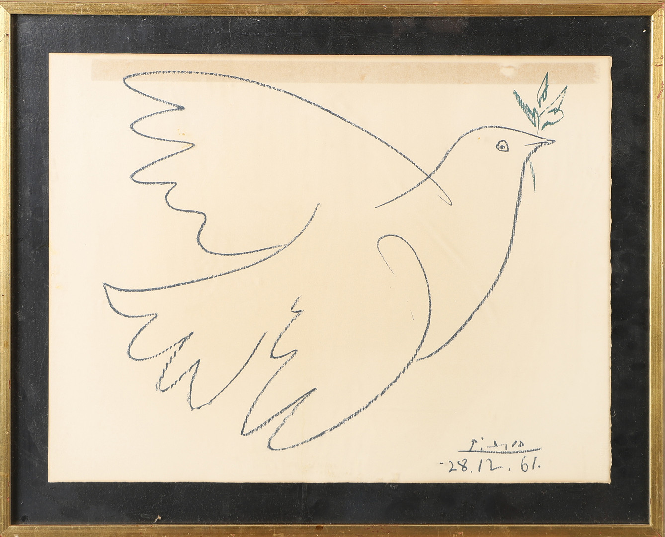 4463463. PABLO PICASSO. EFTER. Fredsduva, tryck, signerad i trycket.