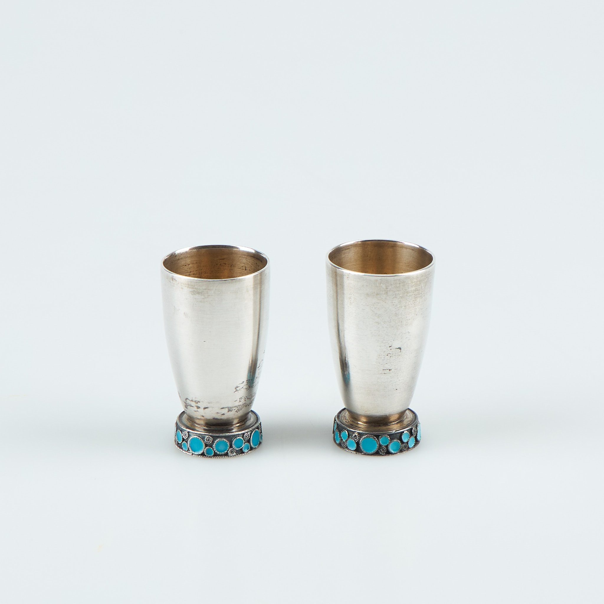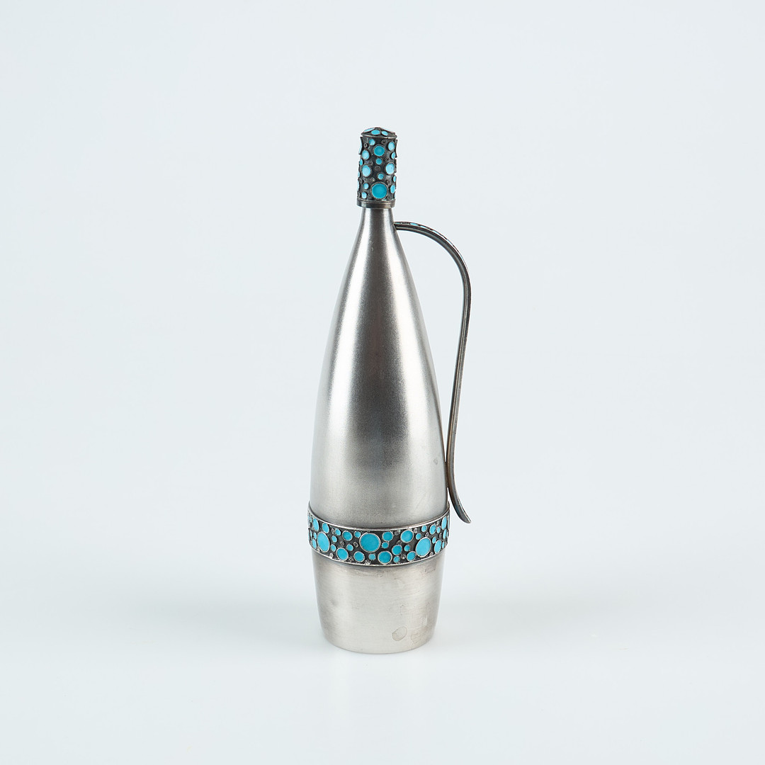 4466669. KARAFF, GLAS, BRICKA, silver, emalj. Sovjetunionen.