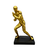 En bokhylla gjord av guldfärgad polyresin i form av en idrottsman eller kroppsbyggare.