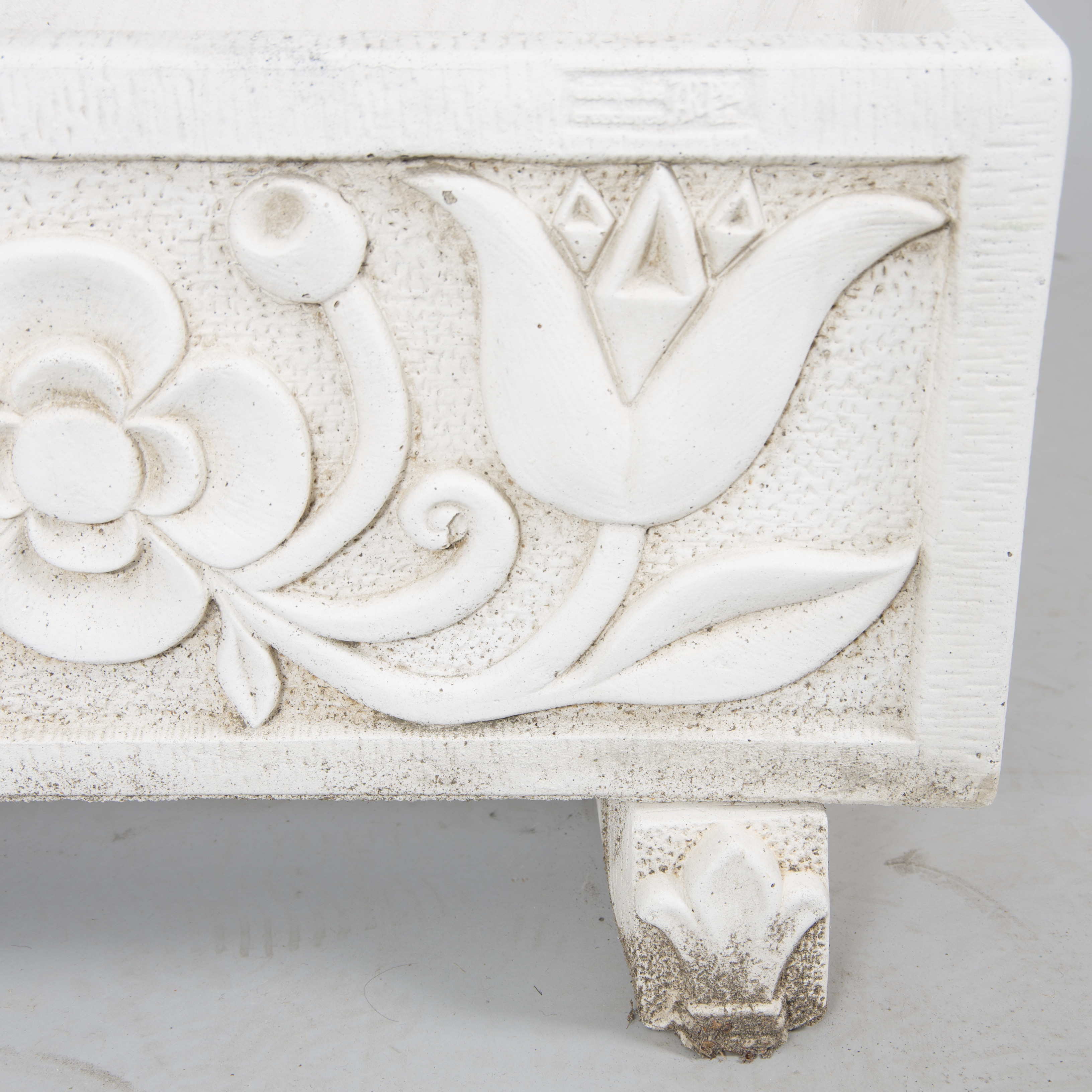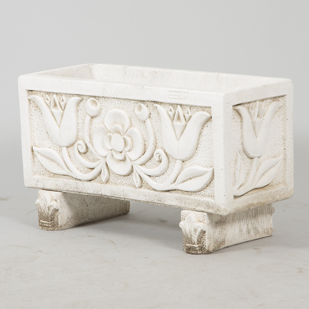 447058. BLOMLÅDA, vitmålad cement.