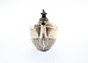 Handtaget är lätt löst, stenar något på en plan yta, sprickor i slutet, bleknar till eboniserat handtag, märken lätt gnuggade men läsbara, bucklor på kroppen, fläckar och repor.