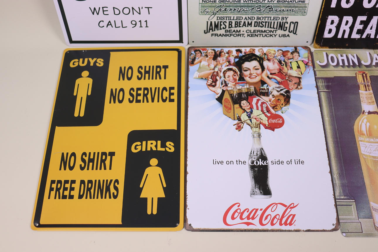 4470939. PLÅTSKYLTAR, reklam och diverse budskap, 12st.