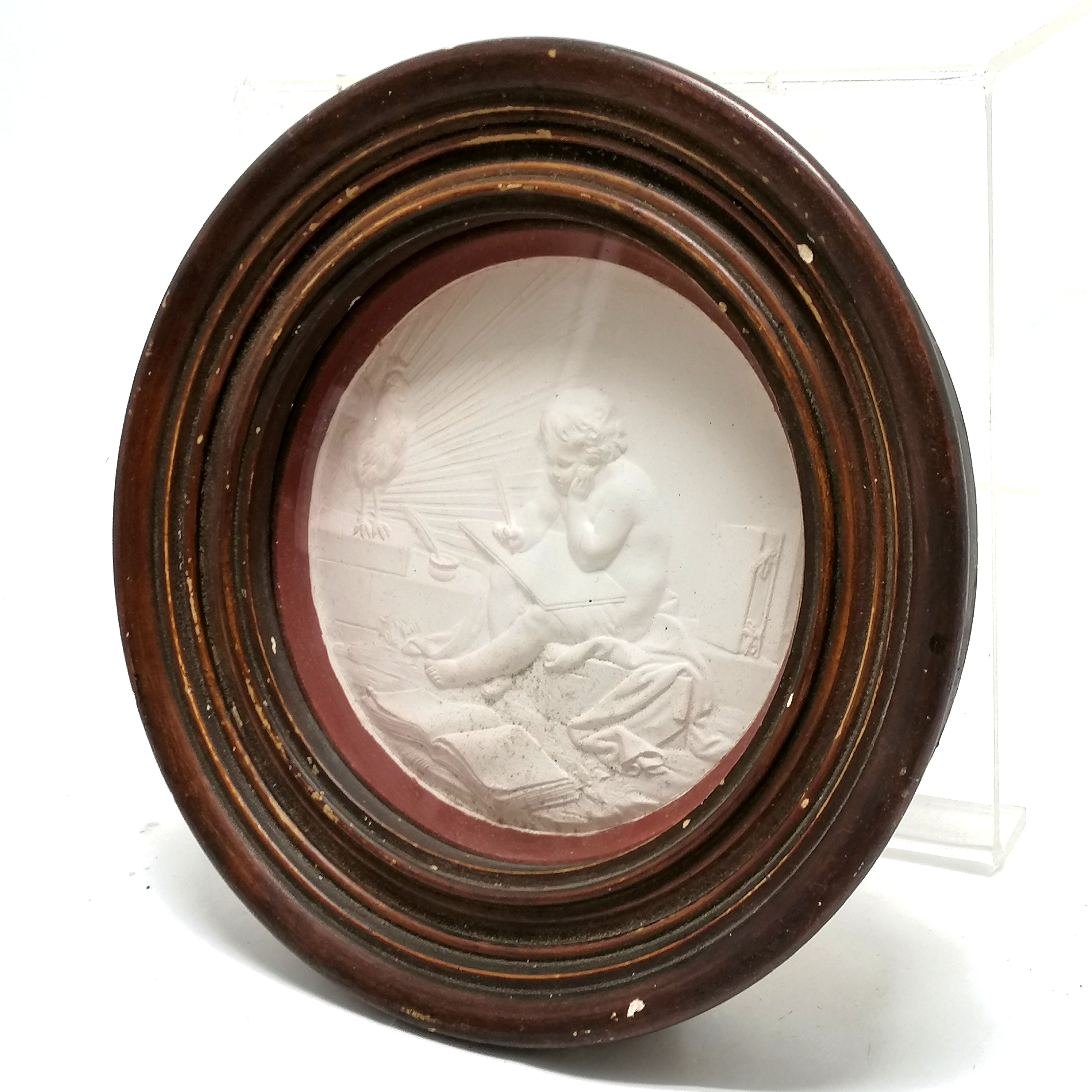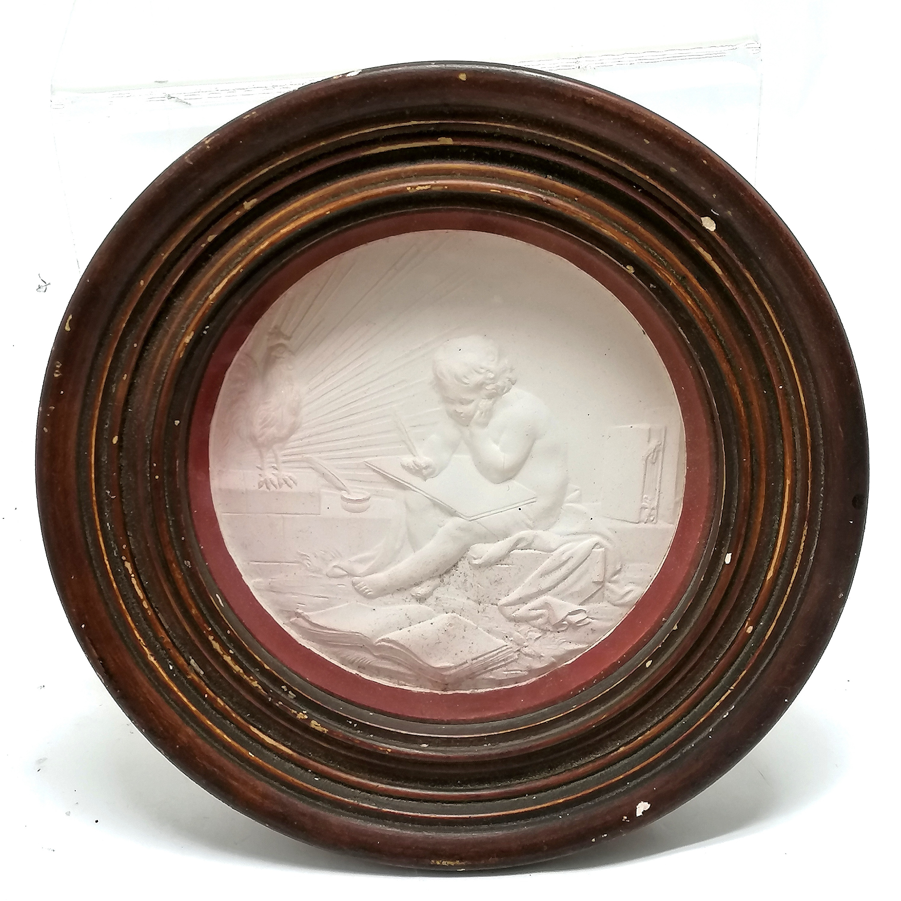 4473177. * CIRKULÄR INRAMAD RELIEFVIT PANEL SOM VISAR BARN.