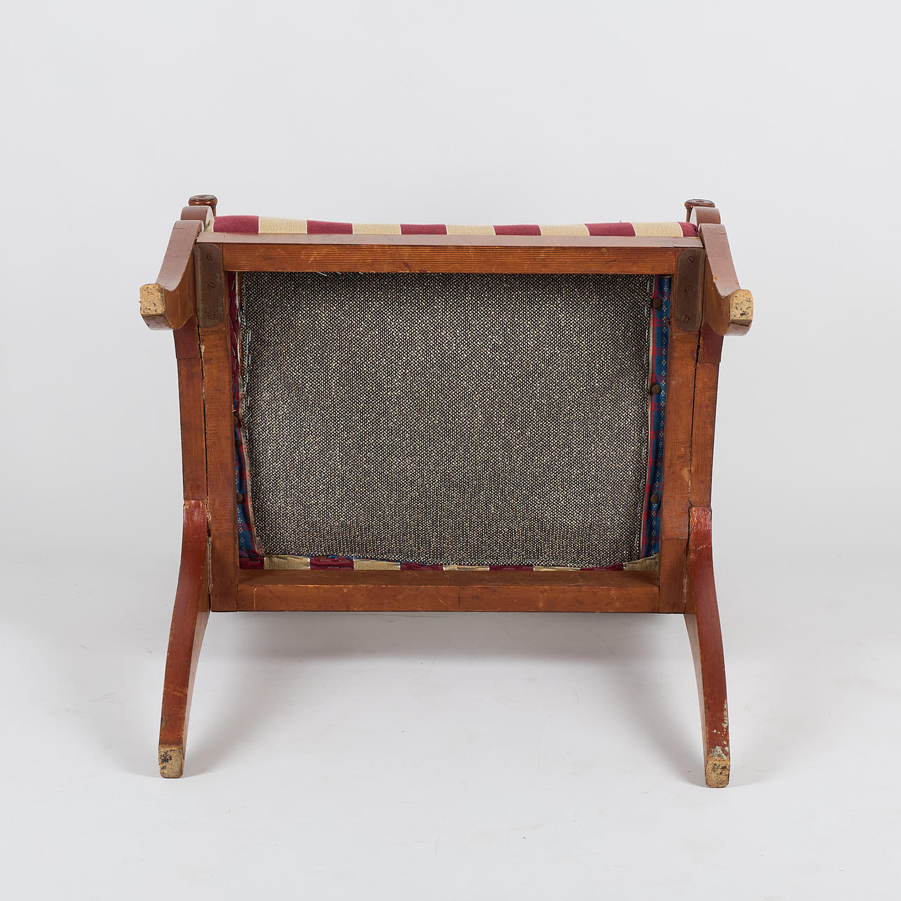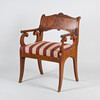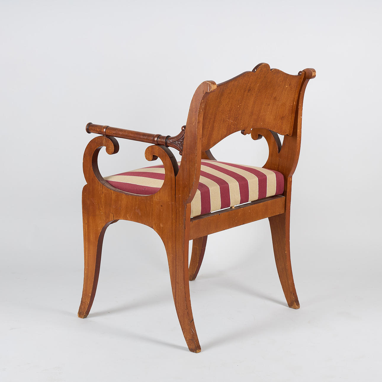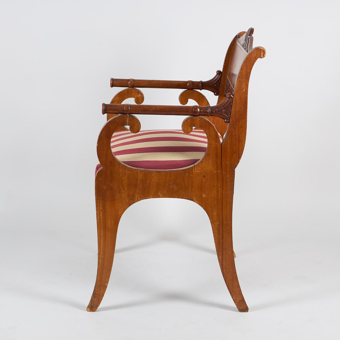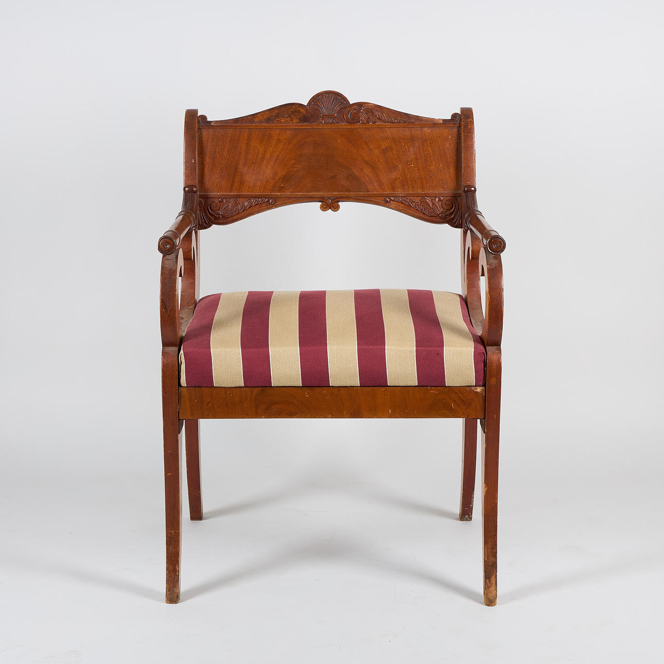 Mahogny. Höjd 85 cm, bredd 60 cm, sitthöjd 47 cm.