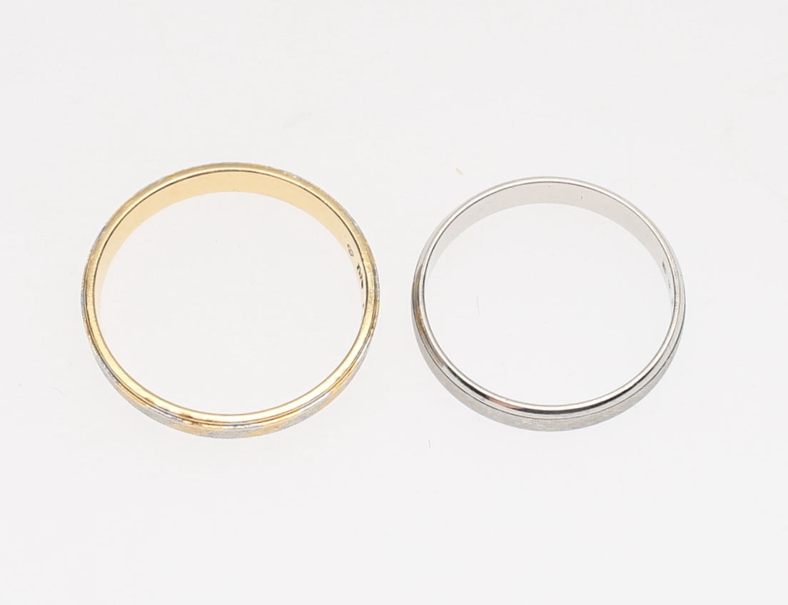447647. RINGAR, 2 st, platina, röd och vit, vikt ca 6,5 gram.