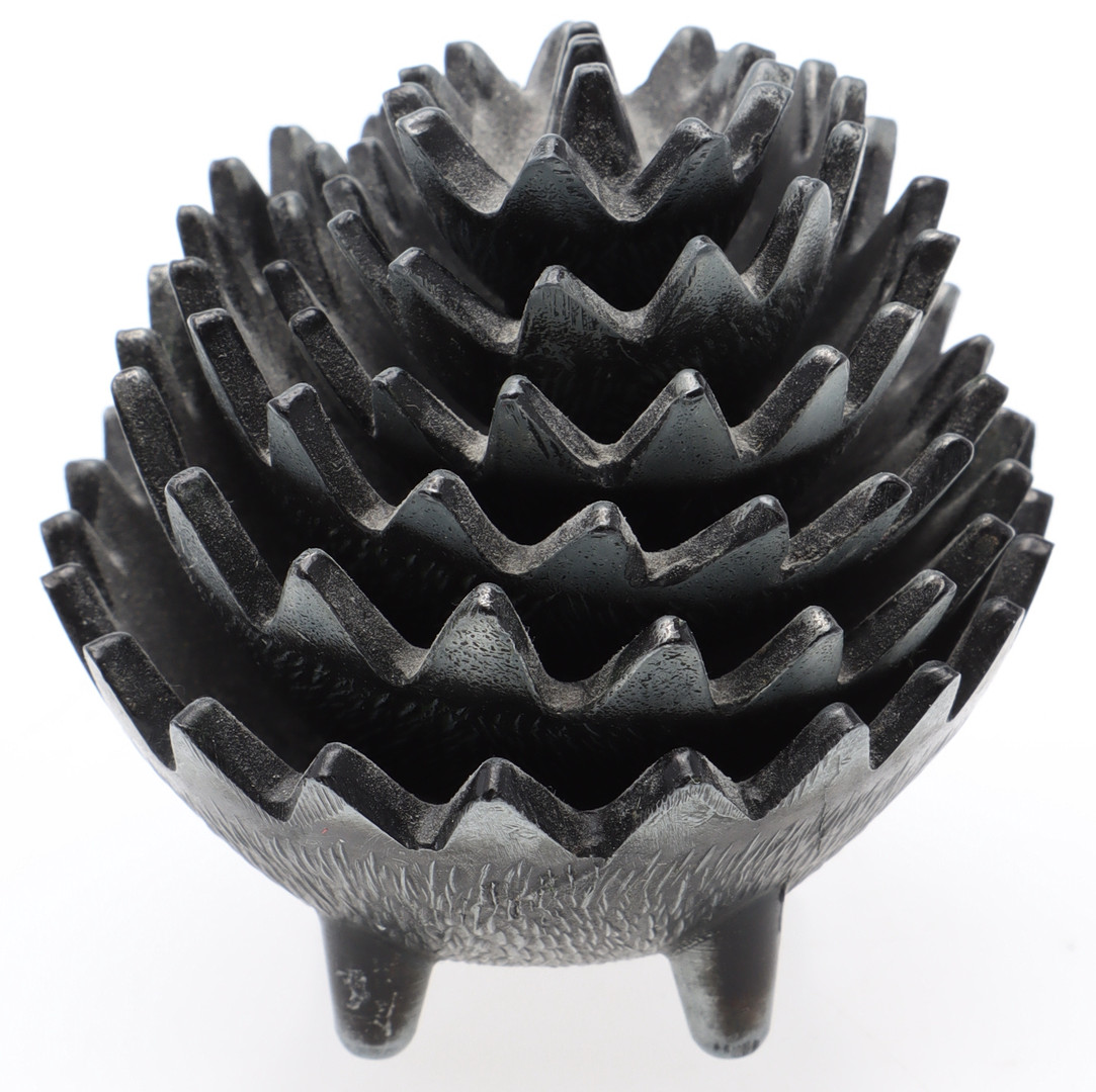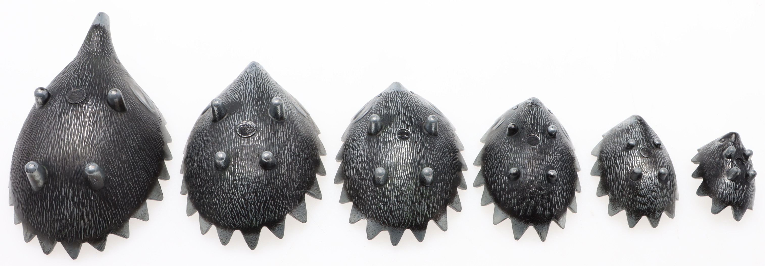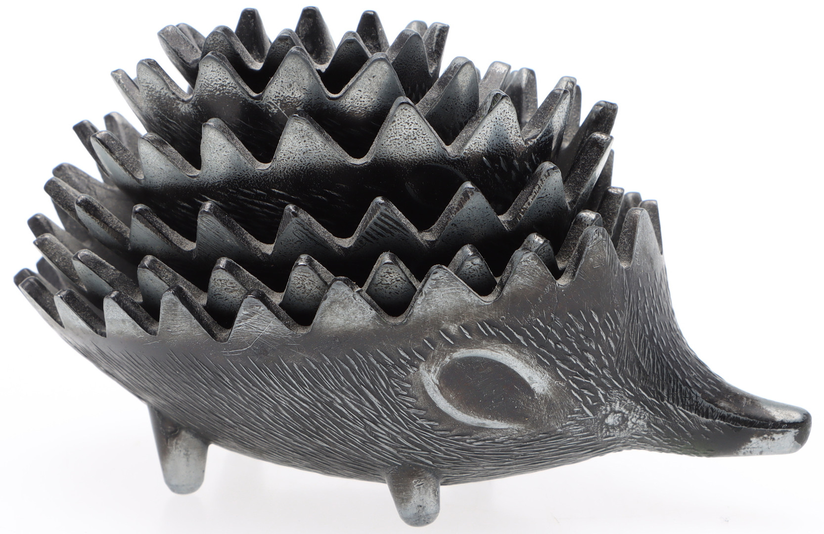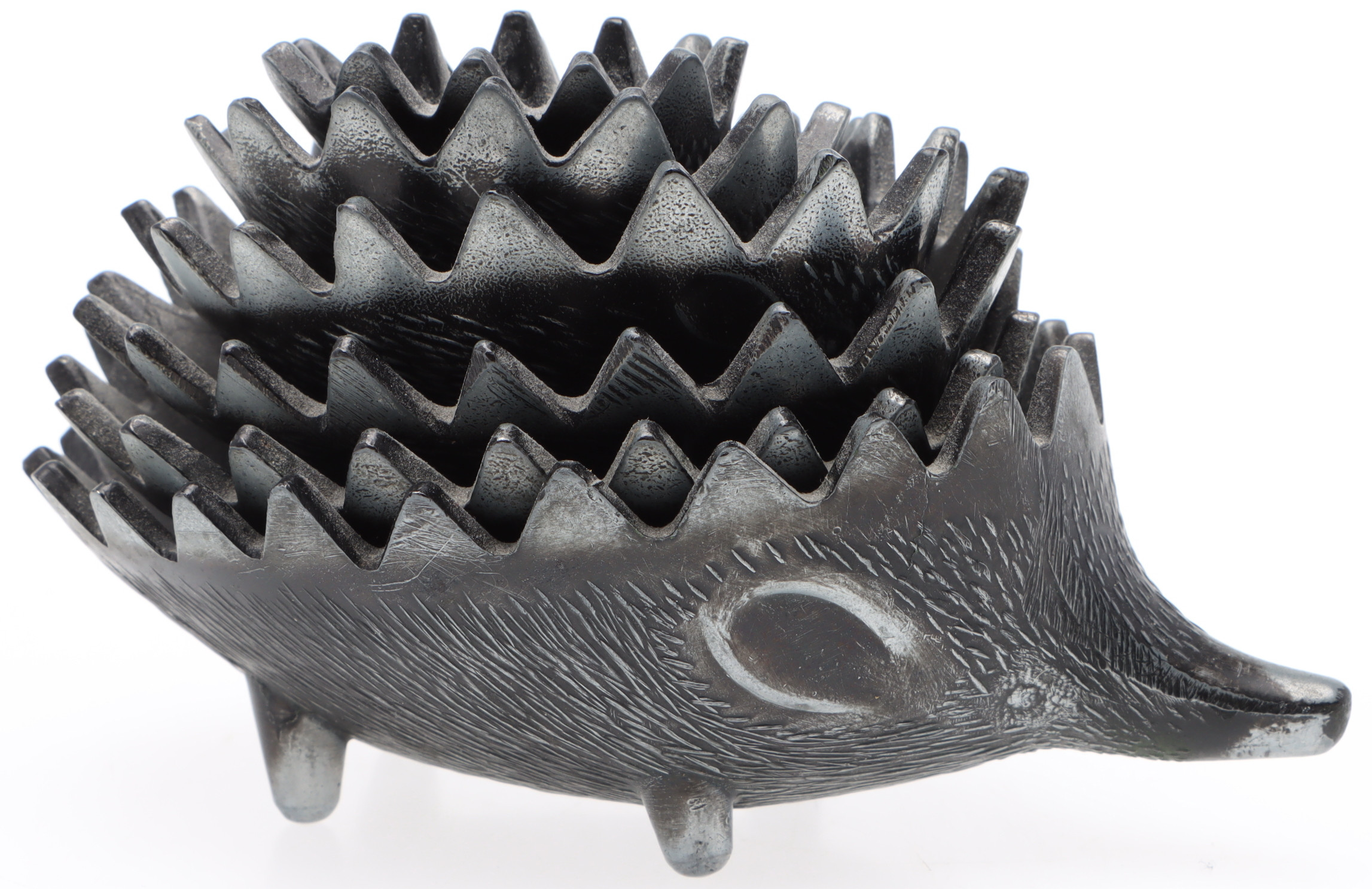 4477121. ASKFAT, 6 st, Igelkottar, metall, stapelbara, efter Walter Bosse.
