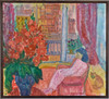 4481332. MARGARETA WALLIN. oljemålning, interiör med kvinna.