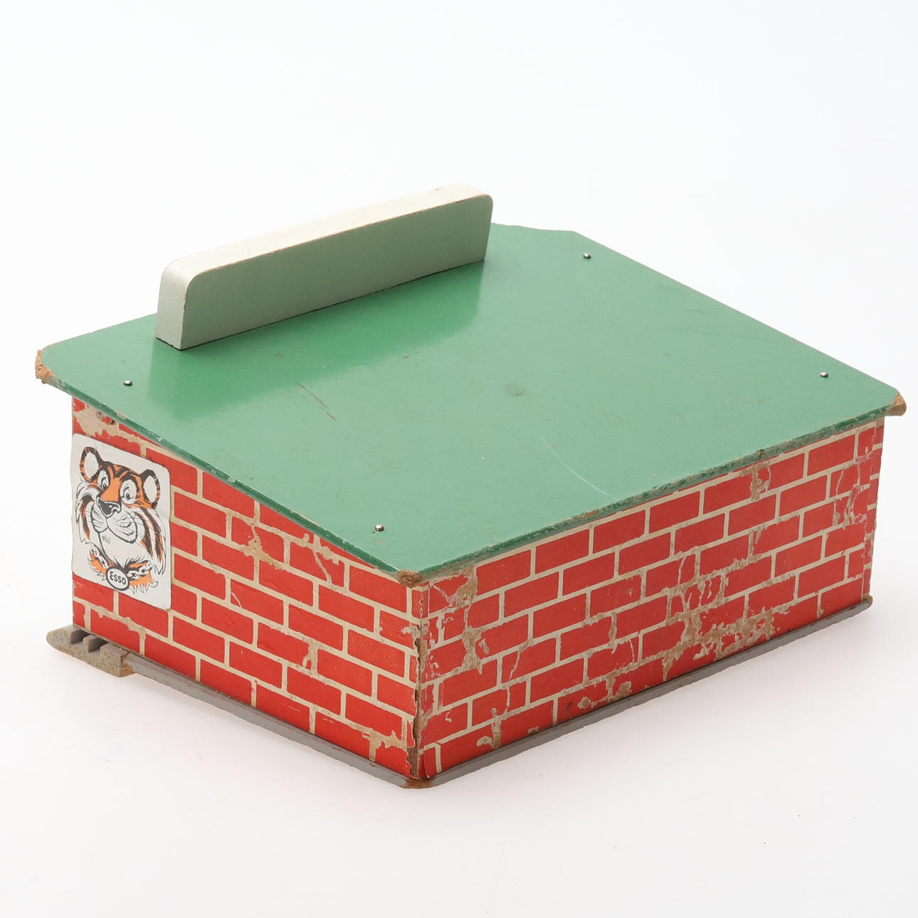 Ålder och bruksslitage, garaget har en skada på framkant tak.