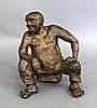 Bronsfigur, man hukande på en sten, skrattande buddahtyp, signerad oigenkännlig a tergo, patinerad, h: 37 cm, vikt: 30 cm.