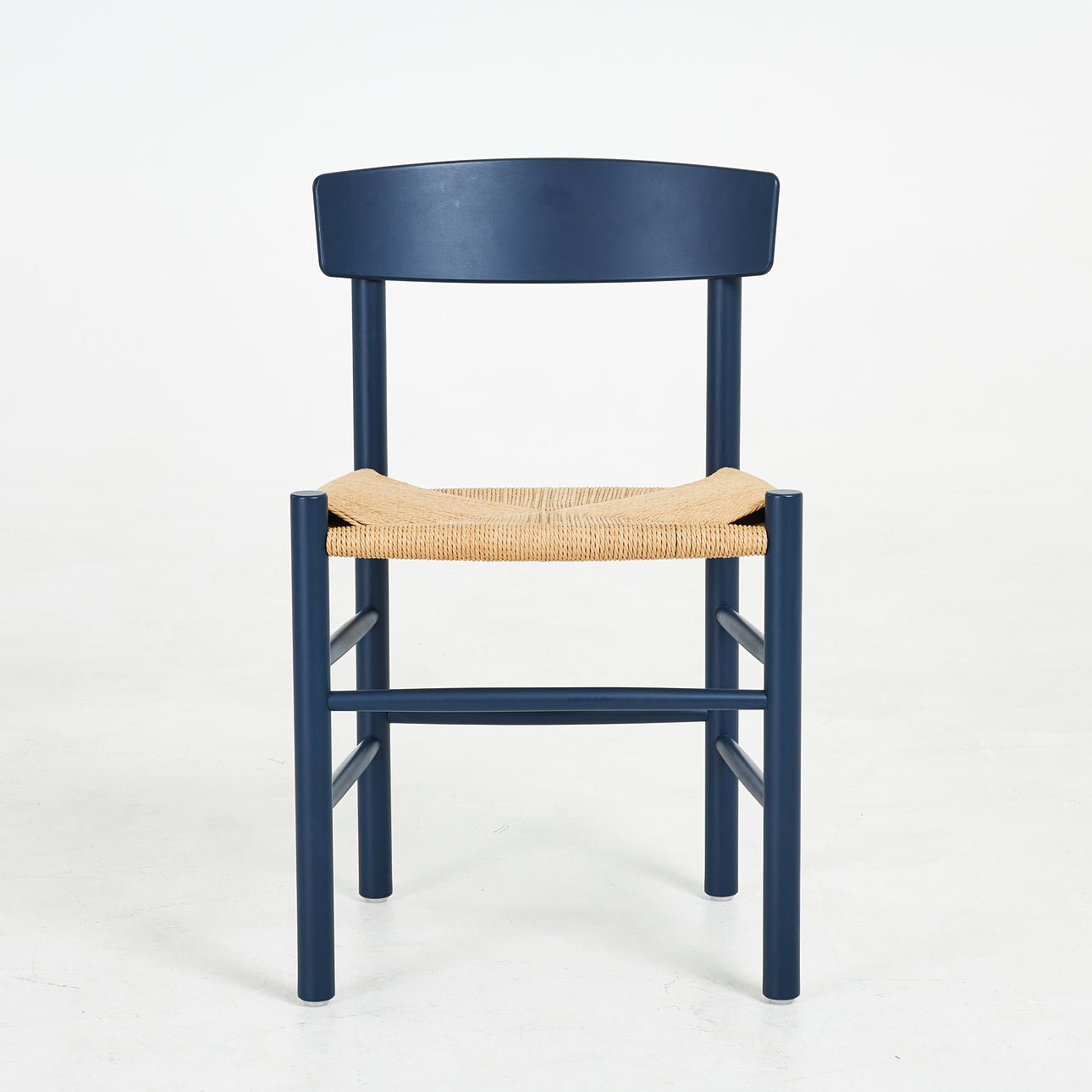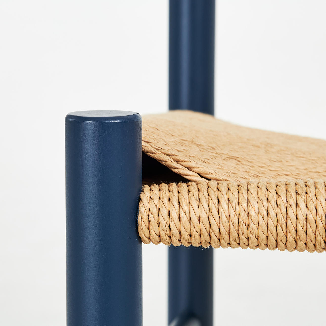 Blå lackerade, flätad sits, papperssnöre Beech, Indigo Blue. Sitthöjd 44 cm, rygghöjd 77 cm.