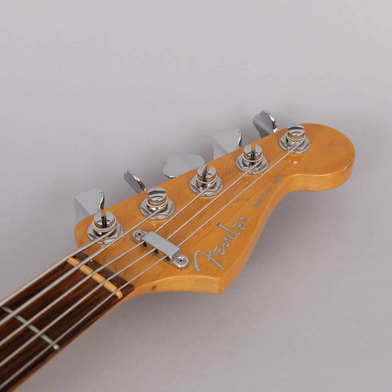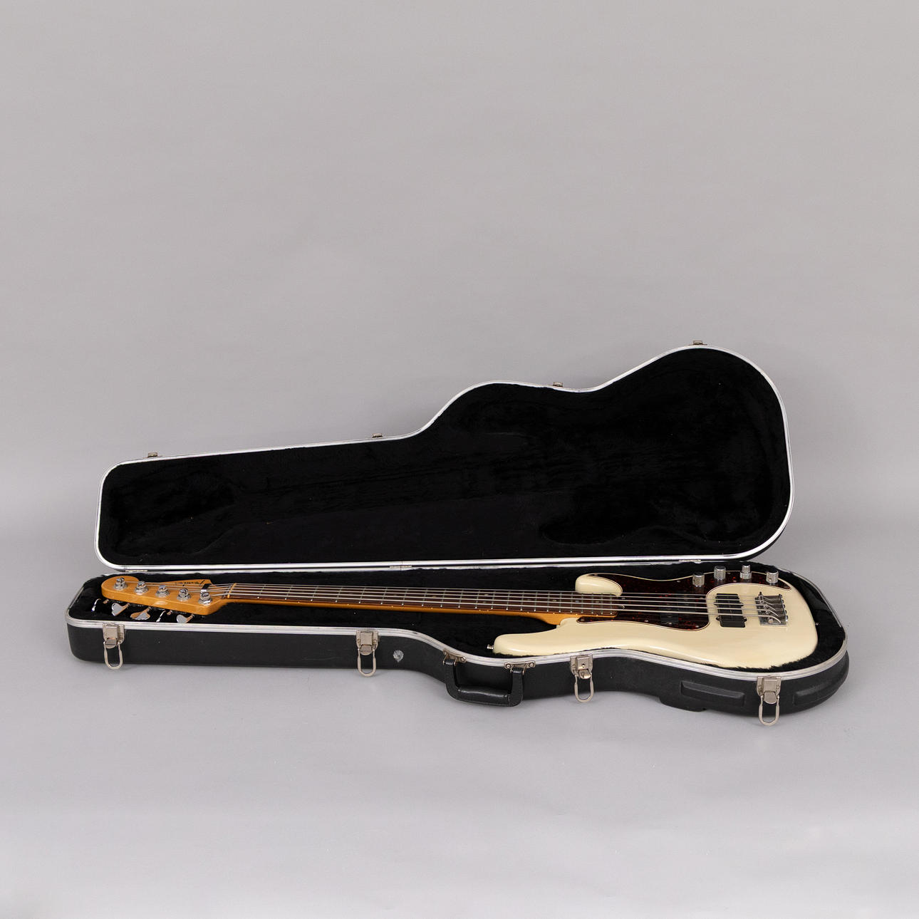 Fender Precision, 5-strängad version, Arctic White. USA-tillverkad. Tillverkningsår 1998-1999, serienummer DN920659