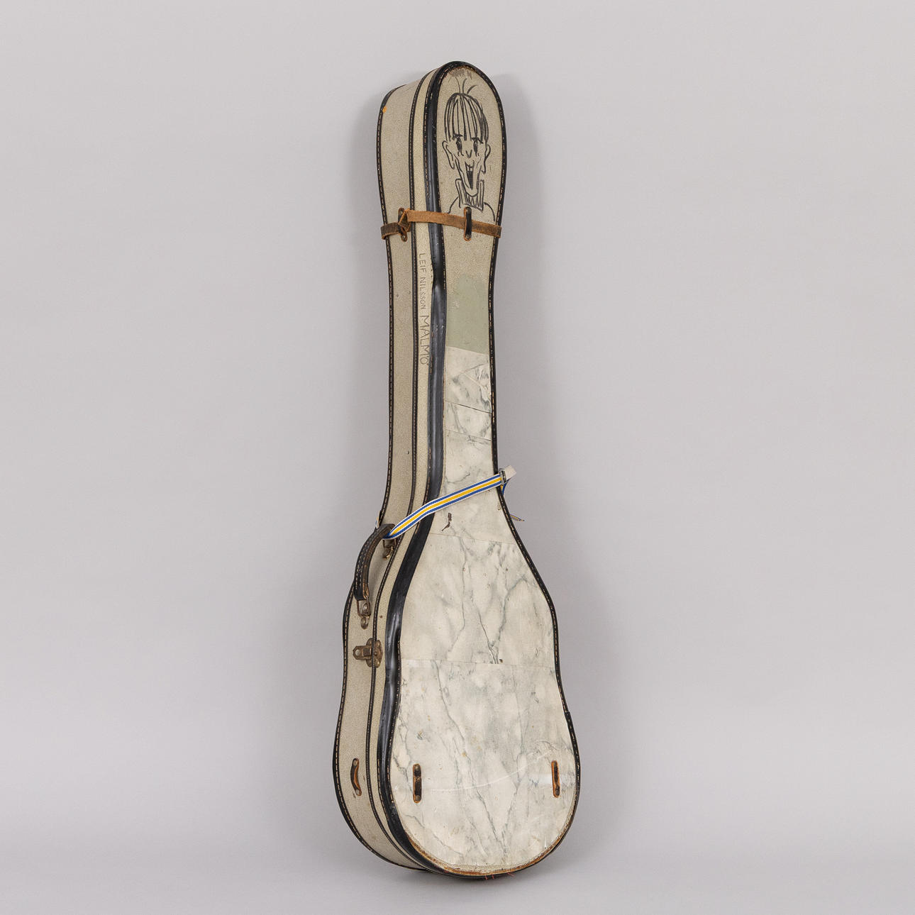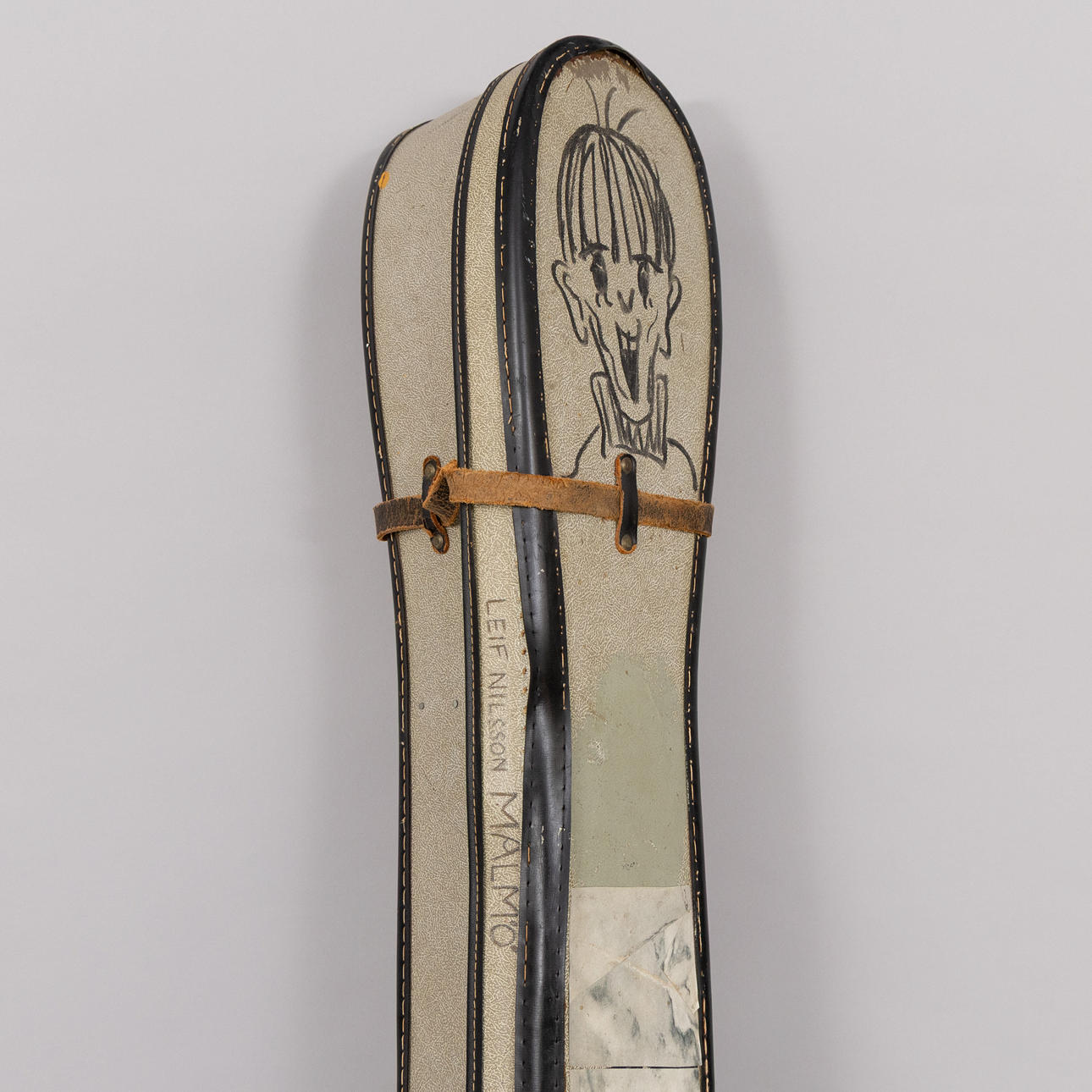 Bruksslitage, repor och märken. Fodral med omfattande slitage, skador och reparationer.