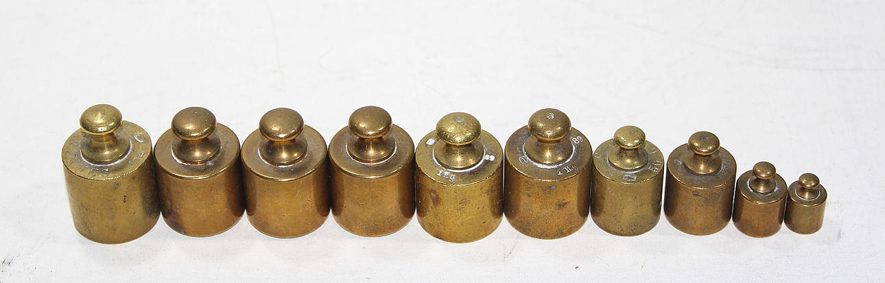 451071. VIKTSATS, mässing, med extra vikter.