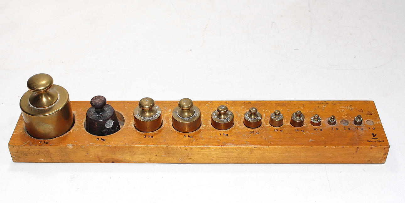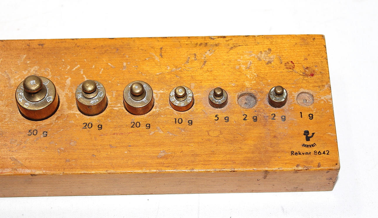 VIKTSATS, mässing, med extra vikter.