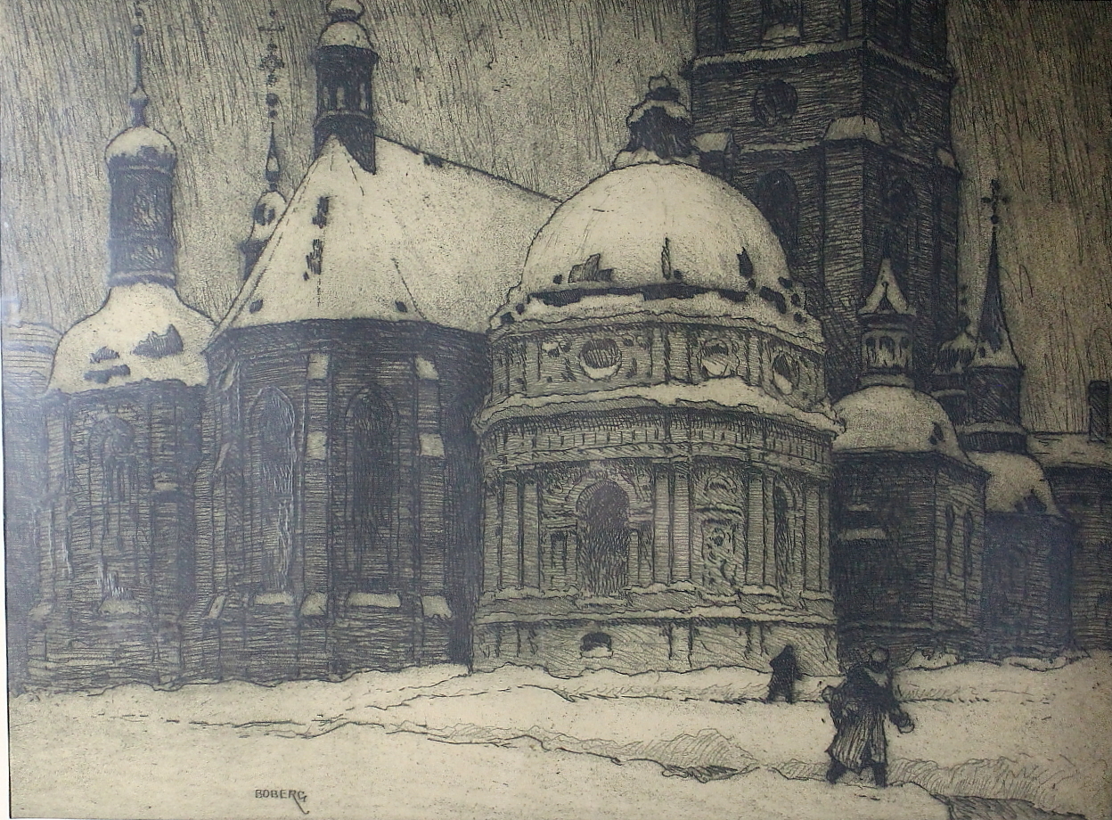 451692. FERDINAD BOBERG. etsning, vintermotiv, signerad.