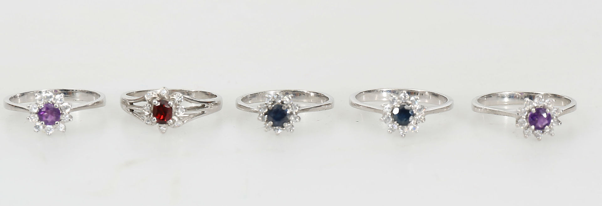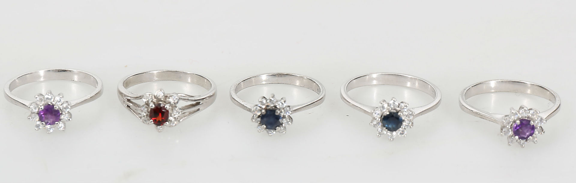 452327. RINGAR, sterlingsilver och stenar, 5 stycken, 1900-2000-tal.