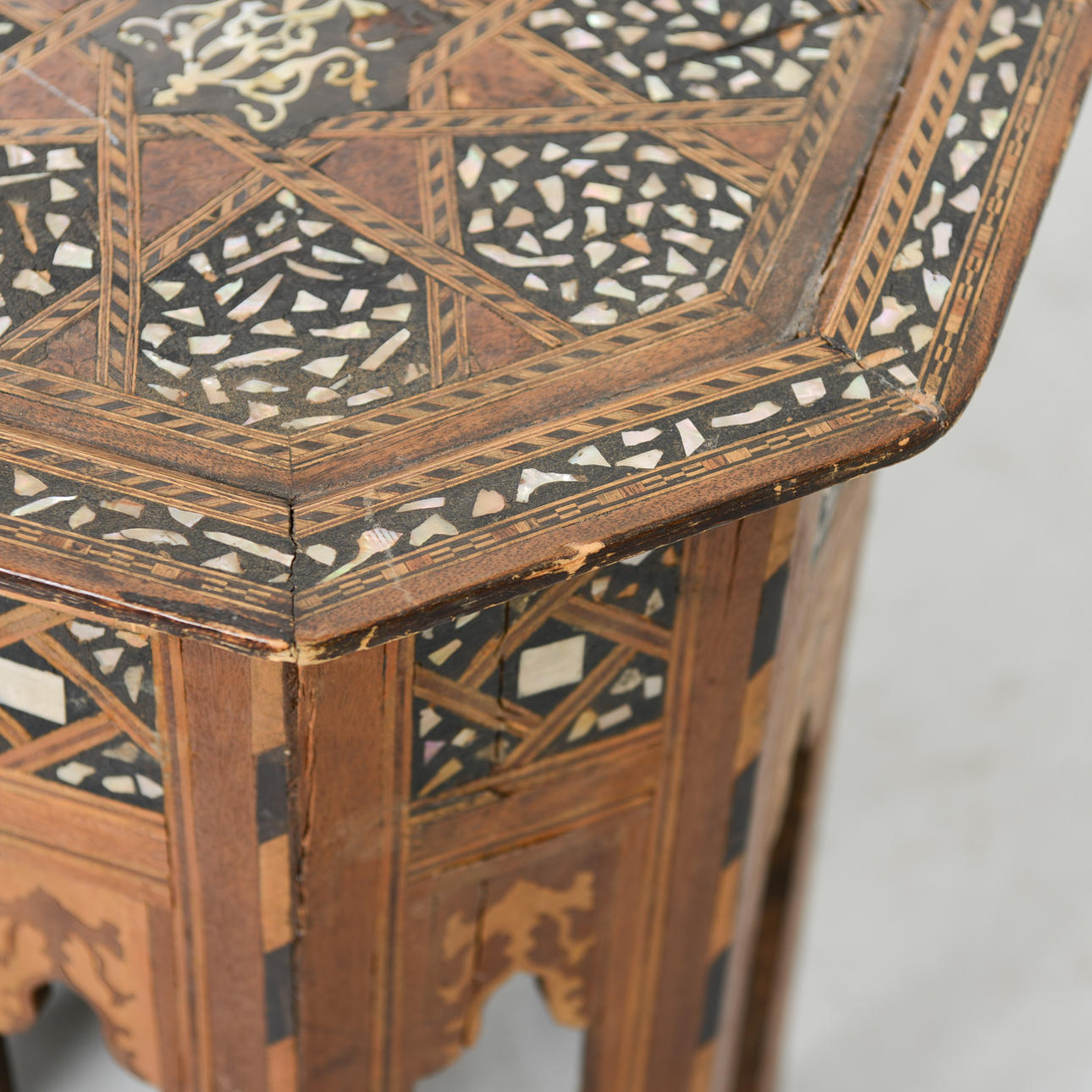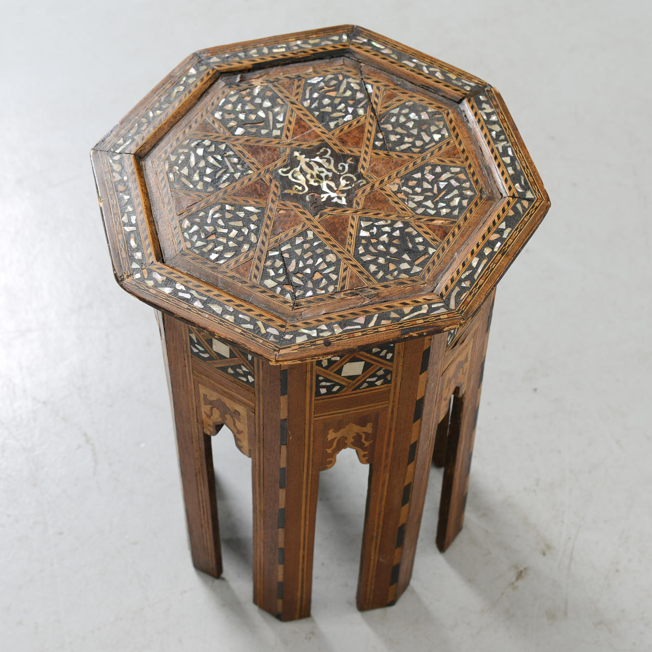Bord med intarsia och detaljer i pärlemor. Mått: 50 x 35 cm.