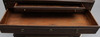 Ek. Tre lådor samt snedställd skiva skiva med bakomliggande lådinredning. Längd 123, bredd 56, höjd 115 cm.
