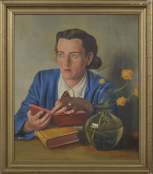 452719. FISCHER-GEISING, HERIBERT. 1896 TEPLITZ-SCHÖNAU-1984 FEIBURG I. BREISGAU. Porträtt av en kvinnlig forskare.