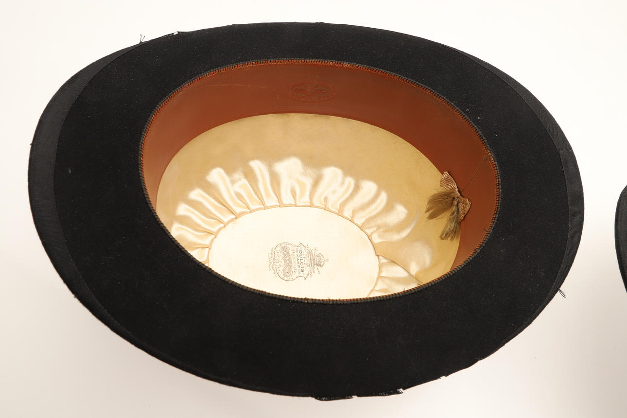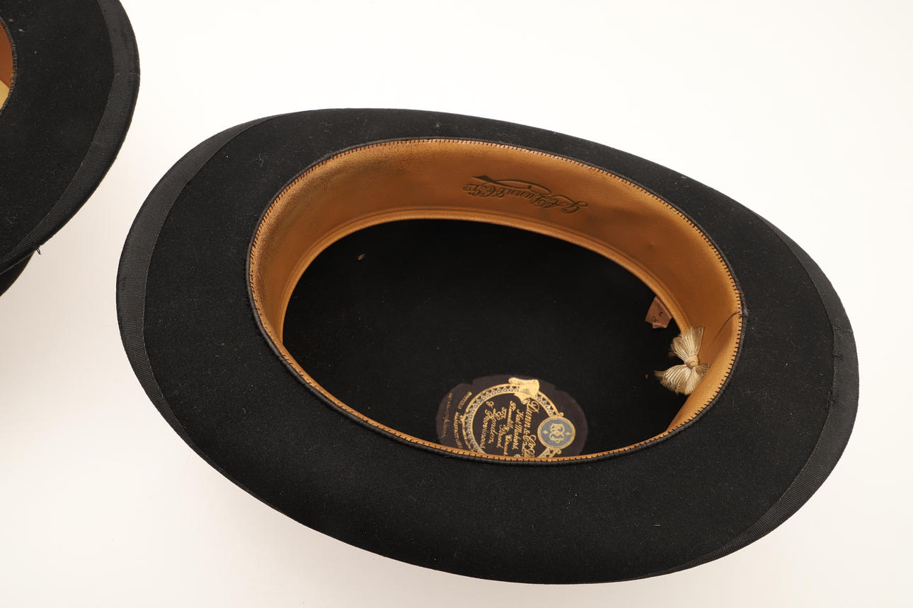 Inkluderar två Bowlerhattar (av Dunn & Co Ltd och The Dulcis make) och en Top Hat av Moss Bros (höjd 14 cm x diameter 31,5 cm vid bredaste punkten). (3).
