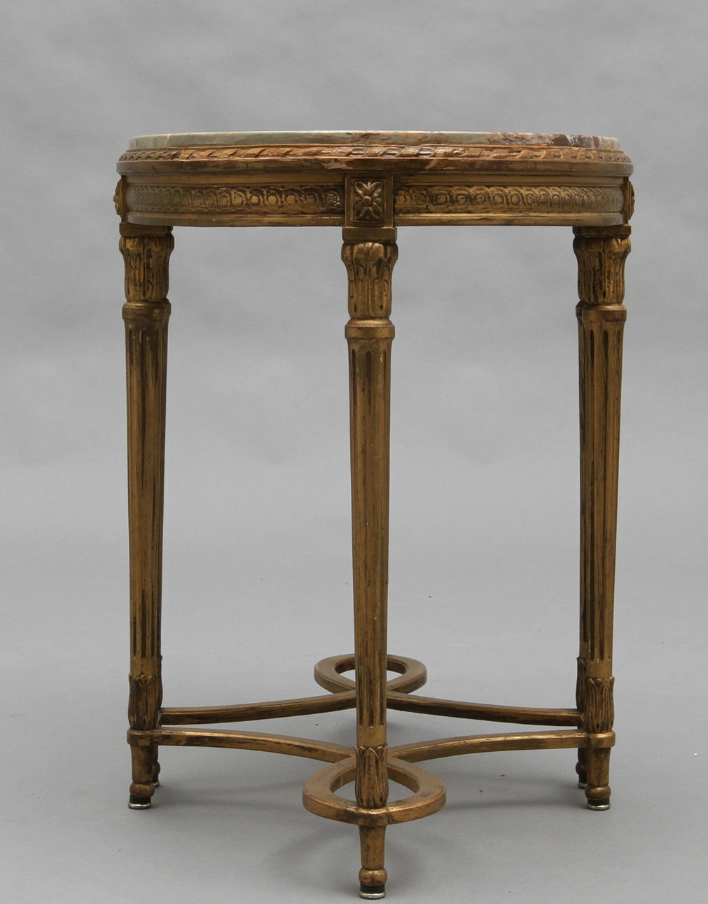 Bronserad träställning. Brun stenskiva. Längd 74, bredd 51, höjd 70 cm.