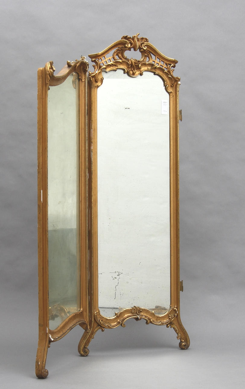 Förgylld stomme. Med dekor av voluter och rocailler. Längd 60, höjd 190 cm X 3.