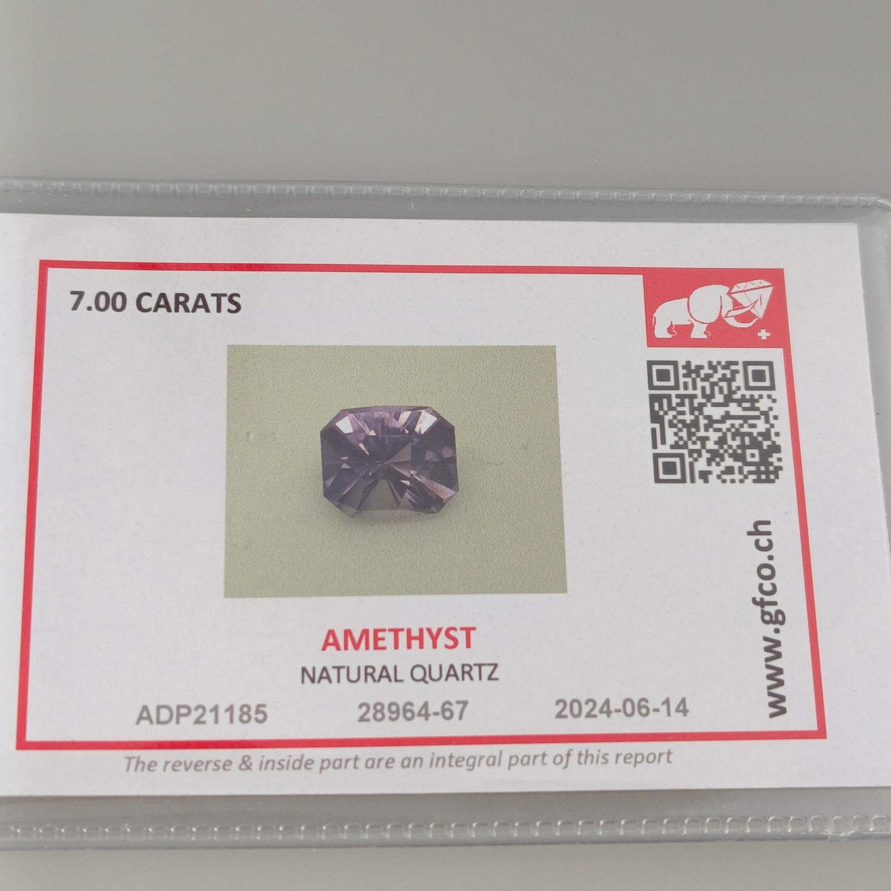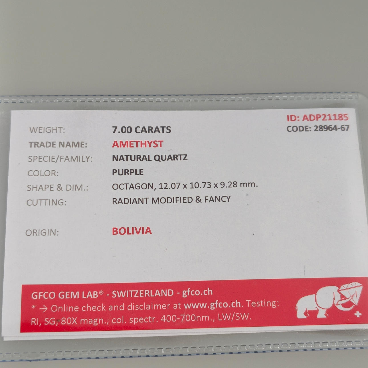 7,00 ct ametist ädelsten GFCO-certifierad strålande form Bolivia Eye Clean.