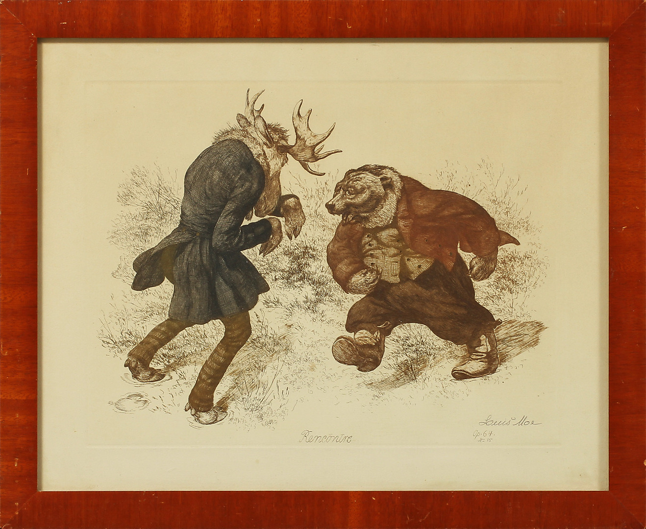 453436. LOUIS MOE. "Rencontre", färgetsning, sign.