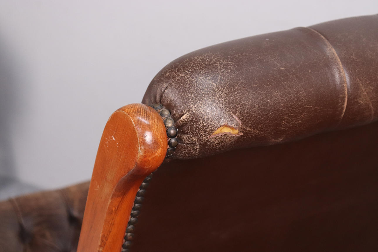 Bruksslitage på läder, en reva på baksida rygg.