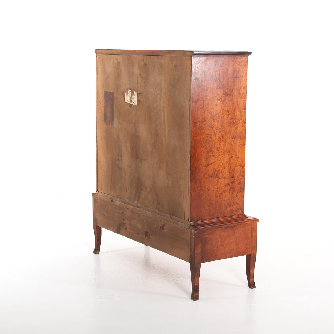 Skåp med klassicistisk dekor, bonad björk, svärtade detaljer. Sverige 1920/30-tal.