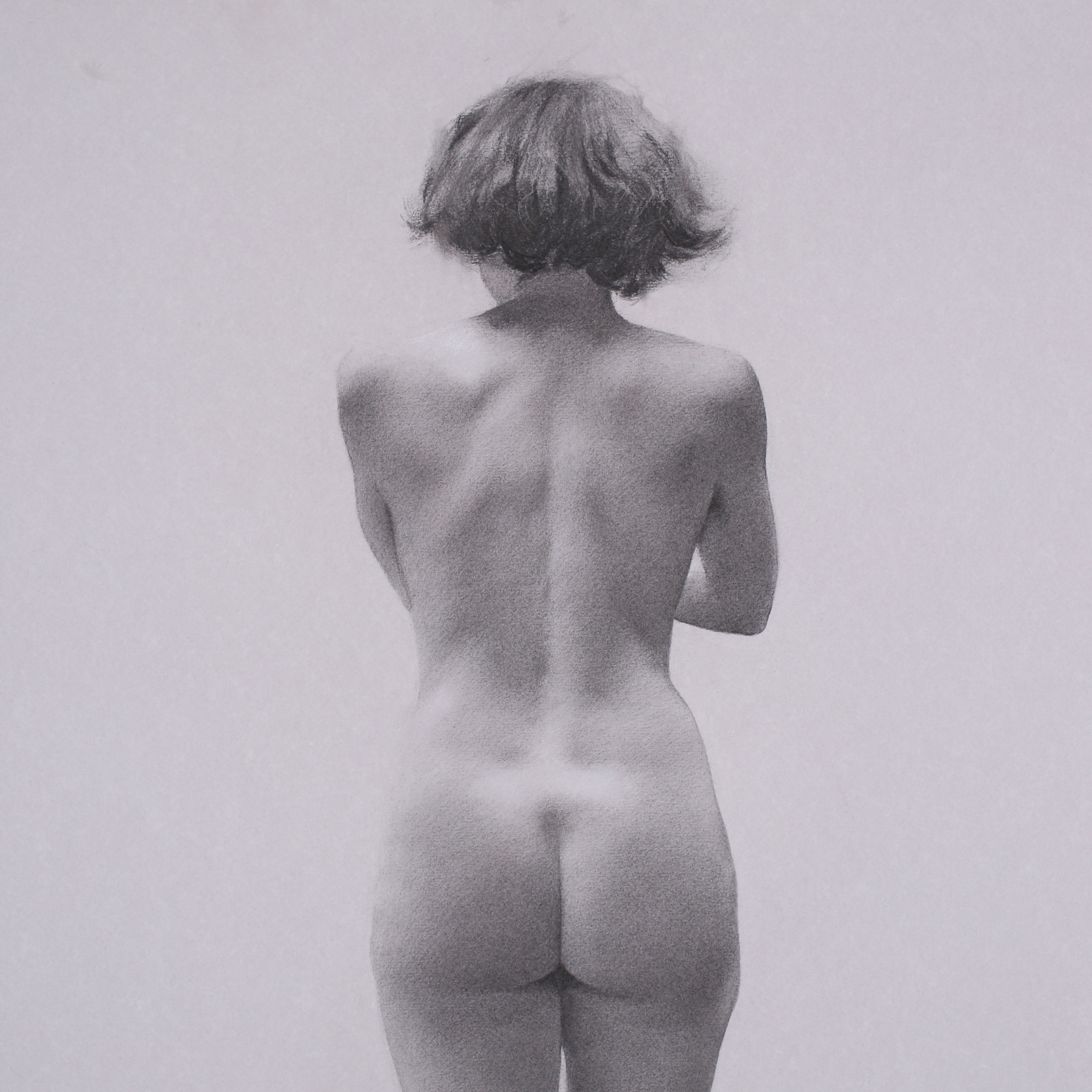 454565. VASILE MARIAN. Modell, kolteckning, signerad.