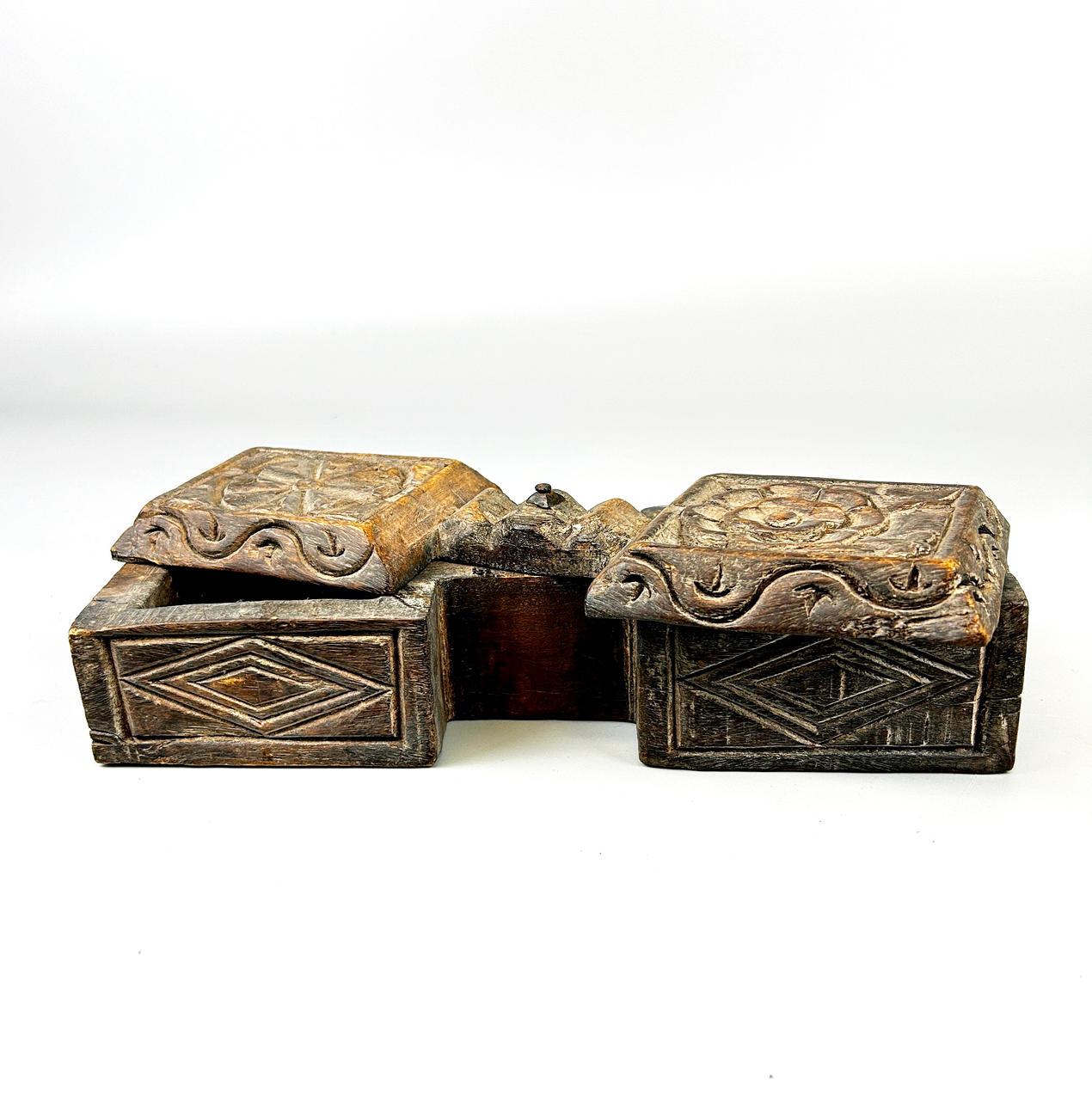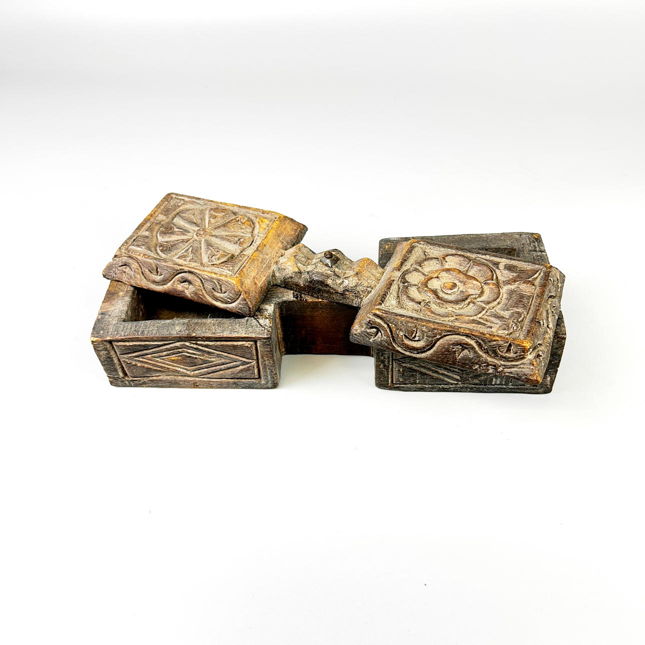 SNIDAD BETELMUTTERLÅDA I TRÄ.