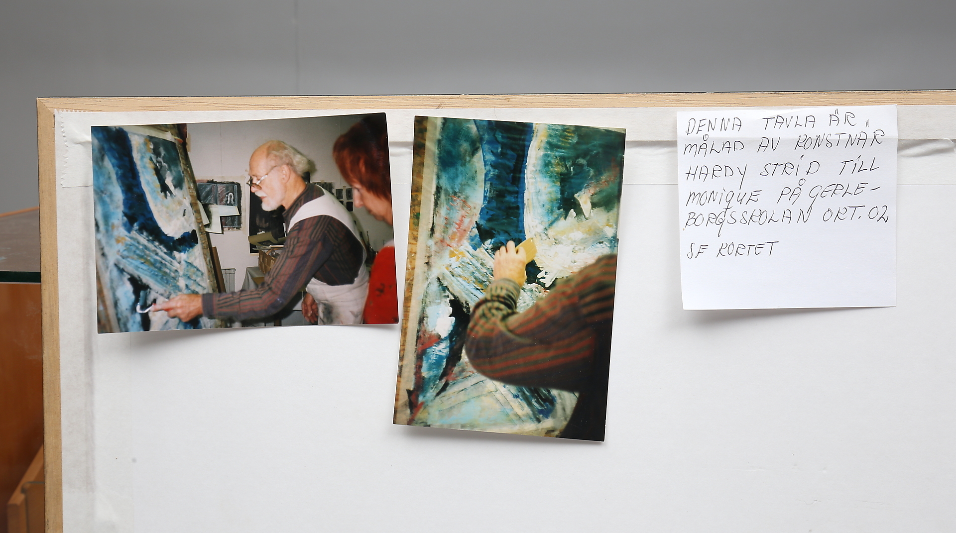 455055. HARDY STRID. TILLSKRIVEN. akryl på papper, daterad -02.
