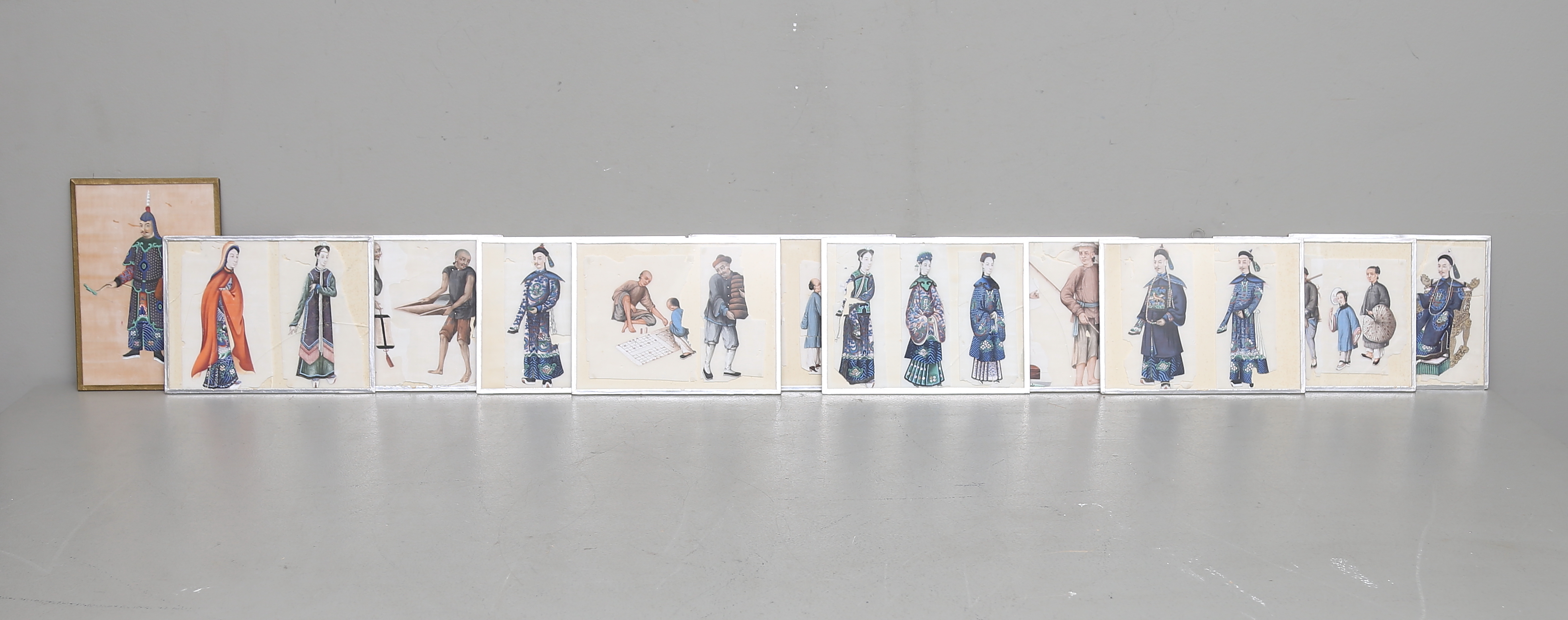 456078. MÅLNINGAR på rispapper, 11 st. Kina. 1800-tal.