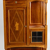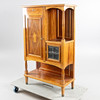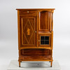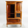Fanerad i mahogny, fothylsor i mässing, höjd ca 130, 81 x 36 cm.