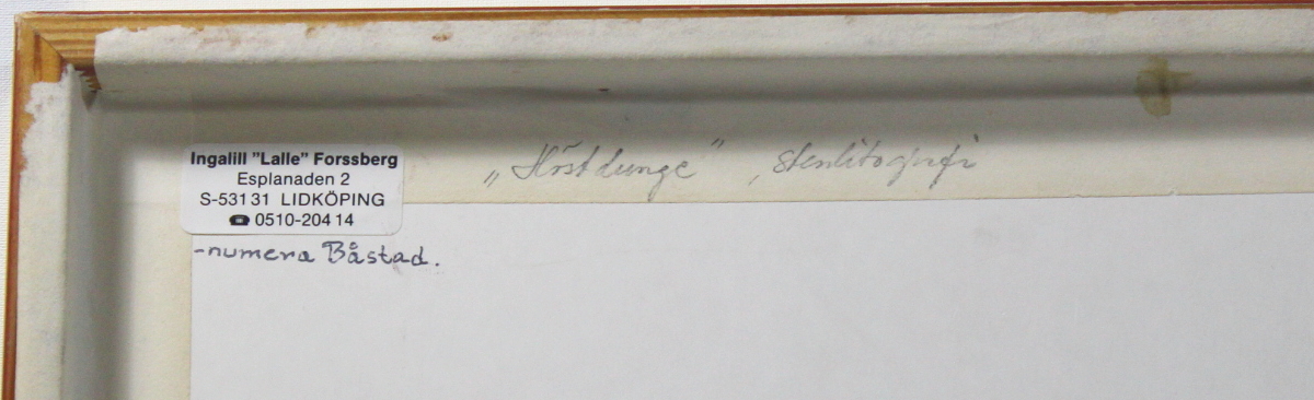 456244. INGALILL " LALLE " FORSSBERG. stenlirografi, " höstdunge " signerad E.T numrerad 1/2.