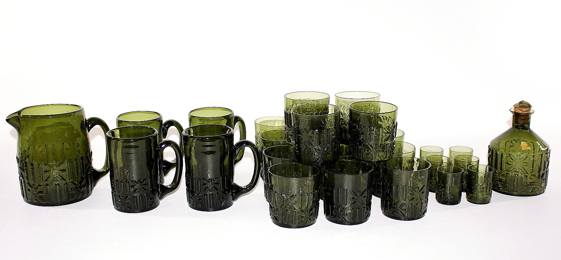 456531. GLAS, BRINGARE, KARAFF, 28 delar, Lars Hellsten, Skruf.