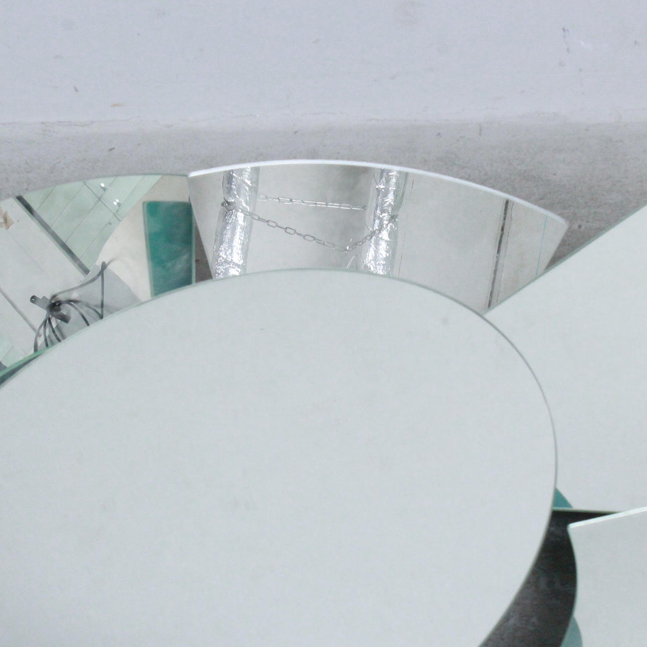 Upplyst spegel/väggspegel/spegelobjekt, Höjd 17 cm, diameter 85 cm.