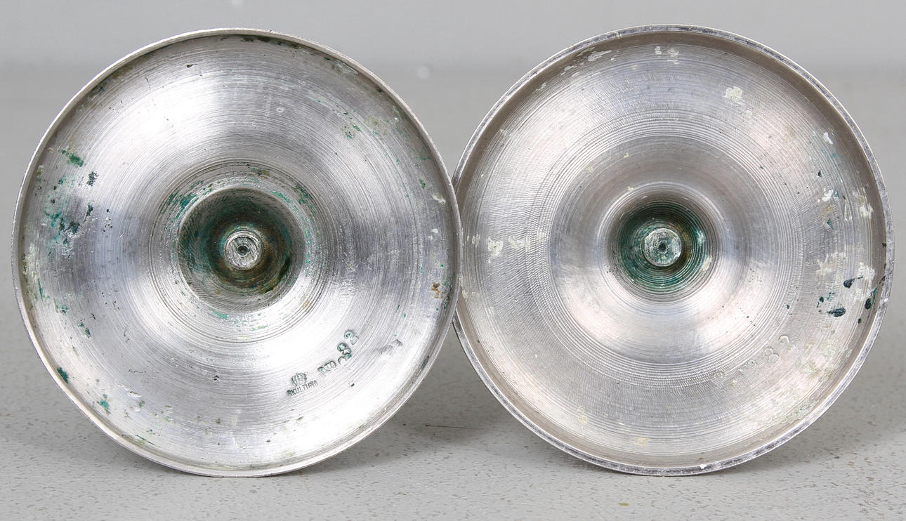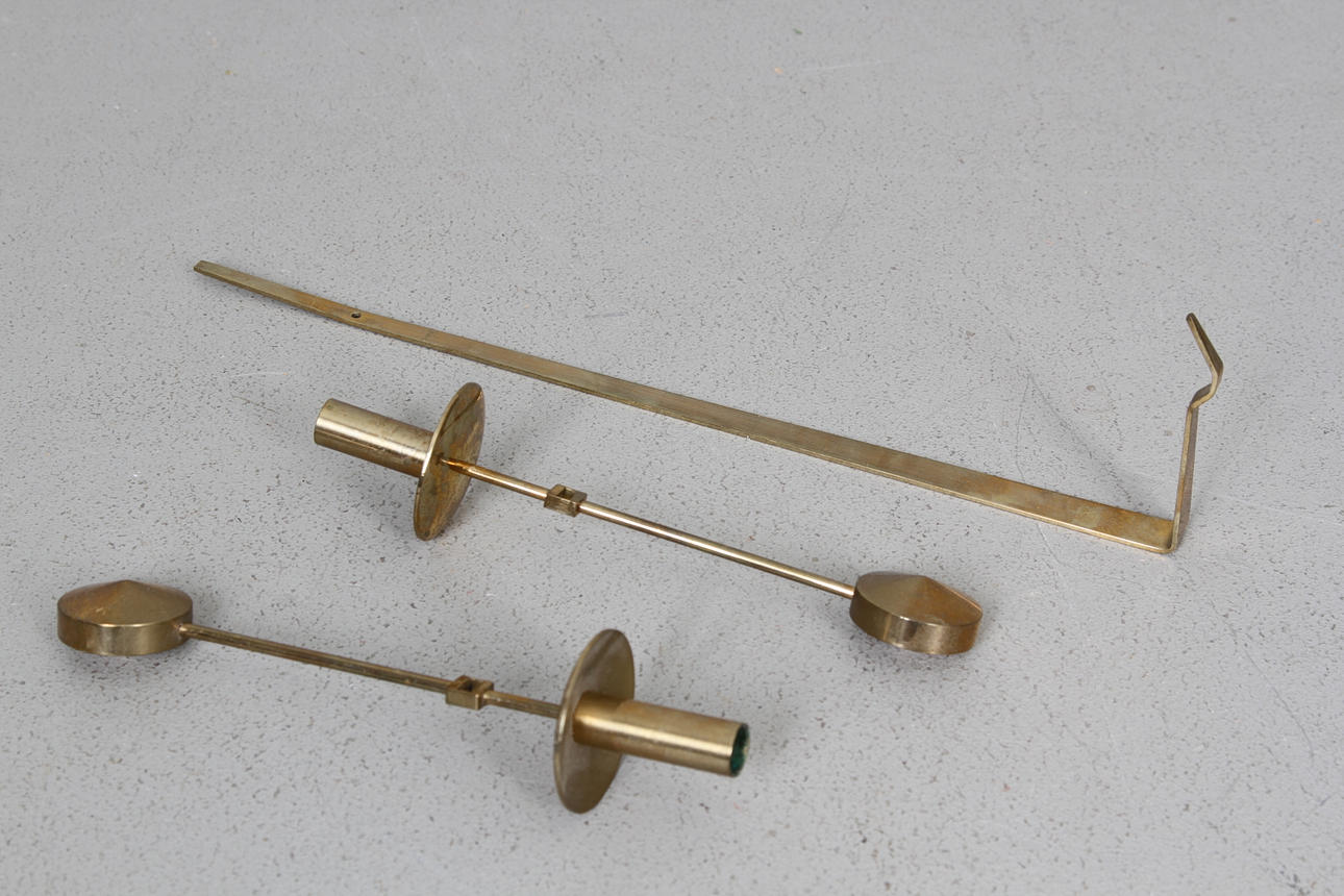 Ett par ljusstakar och en lampetter, Skultuna. Lampetter sign. Pierre Forsell. Eldhund mm.