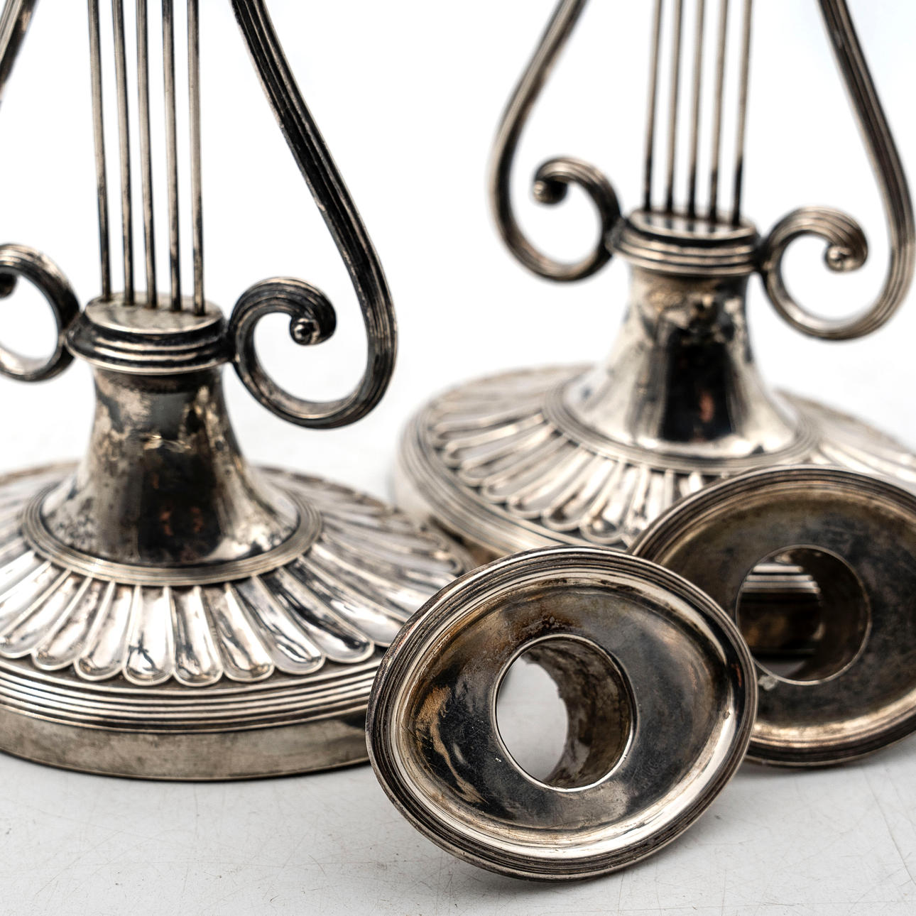 Gipsfyllda bottnar. Stämplade. Höjd: 21 cm Total vikt: 642 gram.