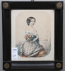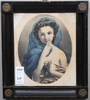 "Flicka med blomsterbukett" samt "Flicka med blå sjal". Ramar i empirutförande. Yttermått 48 x 43 cm.